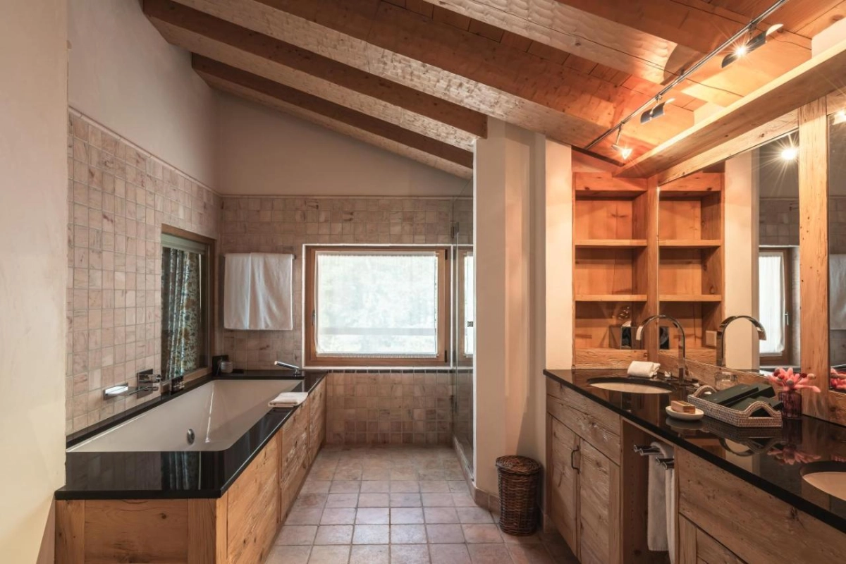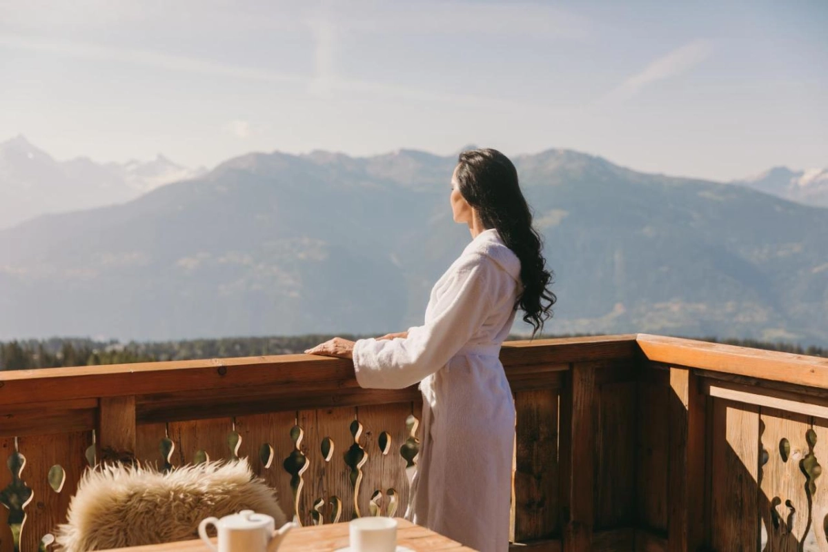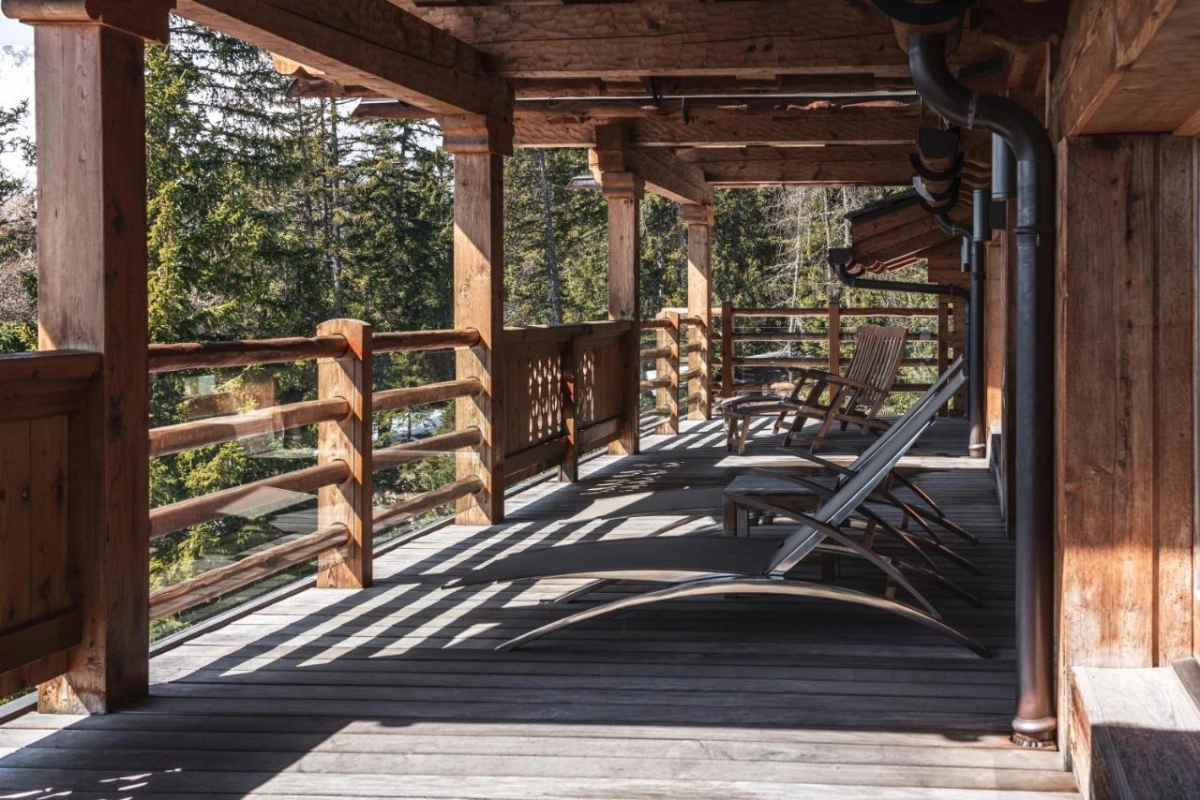 The hotel's 14 rooms and suites, each uniquely designed, weave rustic warmth with modern sophistication, featuring hand-hewn wood beams, plush linens, and expansive windows that drink in the dramatic alpine panorama. Private bathrooms, adorned with luxurious toiletries, offer serene escapes, while select suites boast broad terraces perfect for savouring the crisp mountain air. Thoughtful touches like air-conditioned serenity, flat-screen TVs, and coffee machines create a seamless blend of coziness and contemporary flair, inviting guests to linger in quiet luxury.