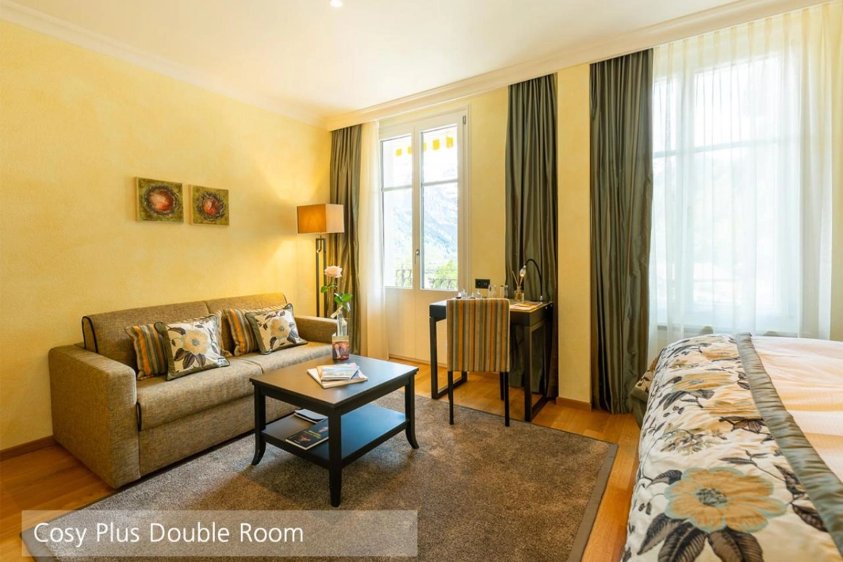The hotel's 82 rooms and suites are sanctuaries of serene elegance, where warm wood accents, plush linens, and expansive windows frame sweeping views of the Bernese Alps or the valley's tranquil expanse. Each space offers air-conditioned comfort, sleek furnishings, and bathrooms adorned with luxurious toiletries, with complimentary non-alcoholic minibars adding a thoughtful touch. Select suites boast private balconies, inviting guests to savour the crisp mountain air and the quiet majesty of the surrounding peaks.