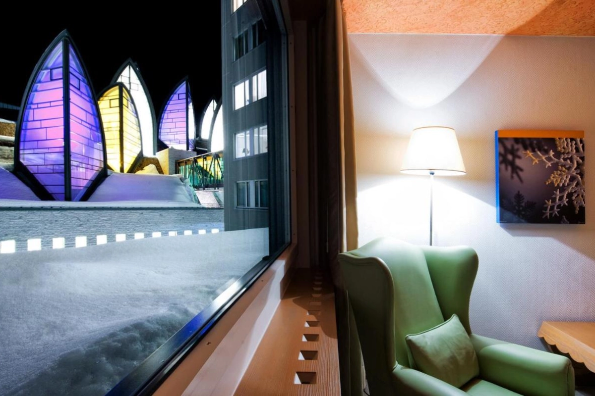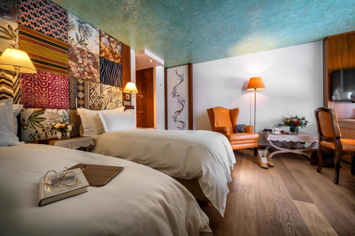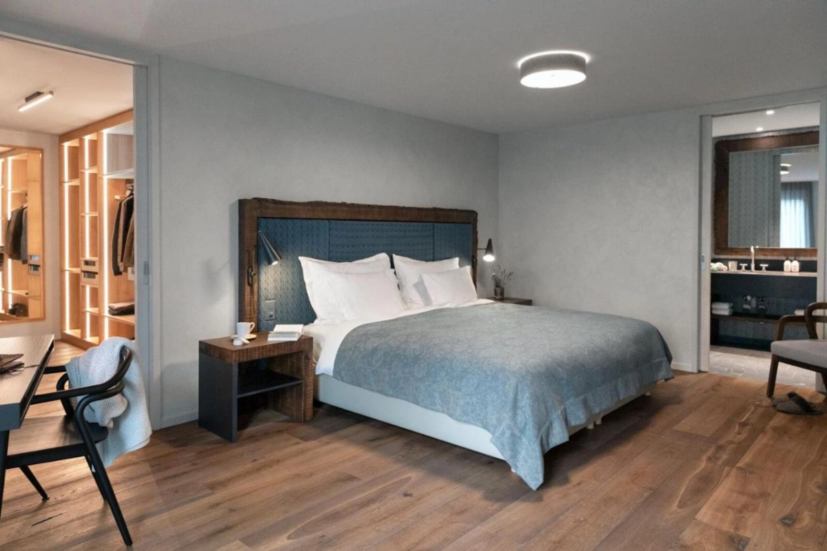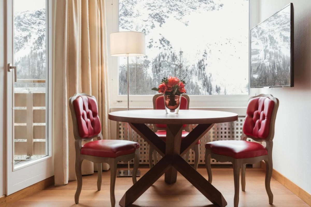 The hotel's 128 rooms and suites, envisioned by Swiss architect Carlo Rampazzi, are a vibrant fusion of contemporary style and alpine warmth, with bold colors, sleek furnishings, and plush linens. Each sanctuary opens to private balconies, unveiling panoramic vistas of snow-draped peaks or Arosa's serene valley. Luxurious bathrooms, stocked with premium toiletries, offer tranquil escapes, while air-conditioned comfort and modern amenities like flat-screen TVs ensure effortless indulgence, crafting an intimate yet opulent haven.