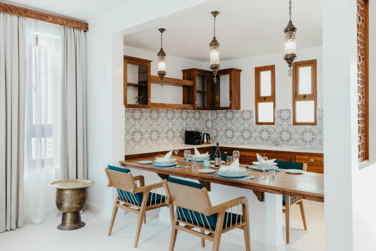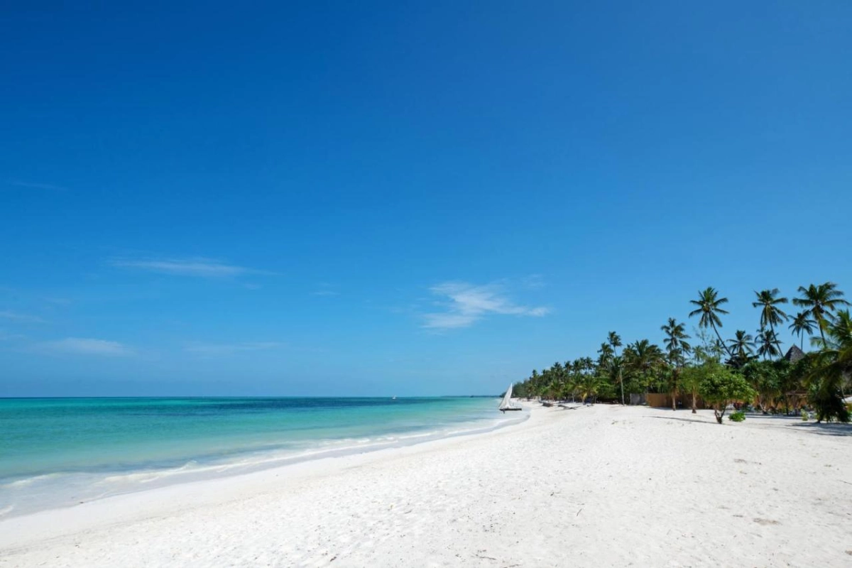 Each of the 82 rooms, offered in four distinct styles, opens to a private balcony framing views of the Indian Ocean or lush gardens, with air-conditioned interiors, safety deposit boxes, and refined furnishings that evoke tranquility. The expansive pool deck, adorned with shaded gazebos and plush loungers, invites leisurely days by the sparkling outdoor pool. A private beach, complete with deck chairs and attentive service, slopes gently into the public beach, perfect for ocean dips or engaging with local traders. The fitness centre caters to active guests, while the serene spa offers treatments infused with Zanzibari botanicals, set against the soothing rhythm of the waves.