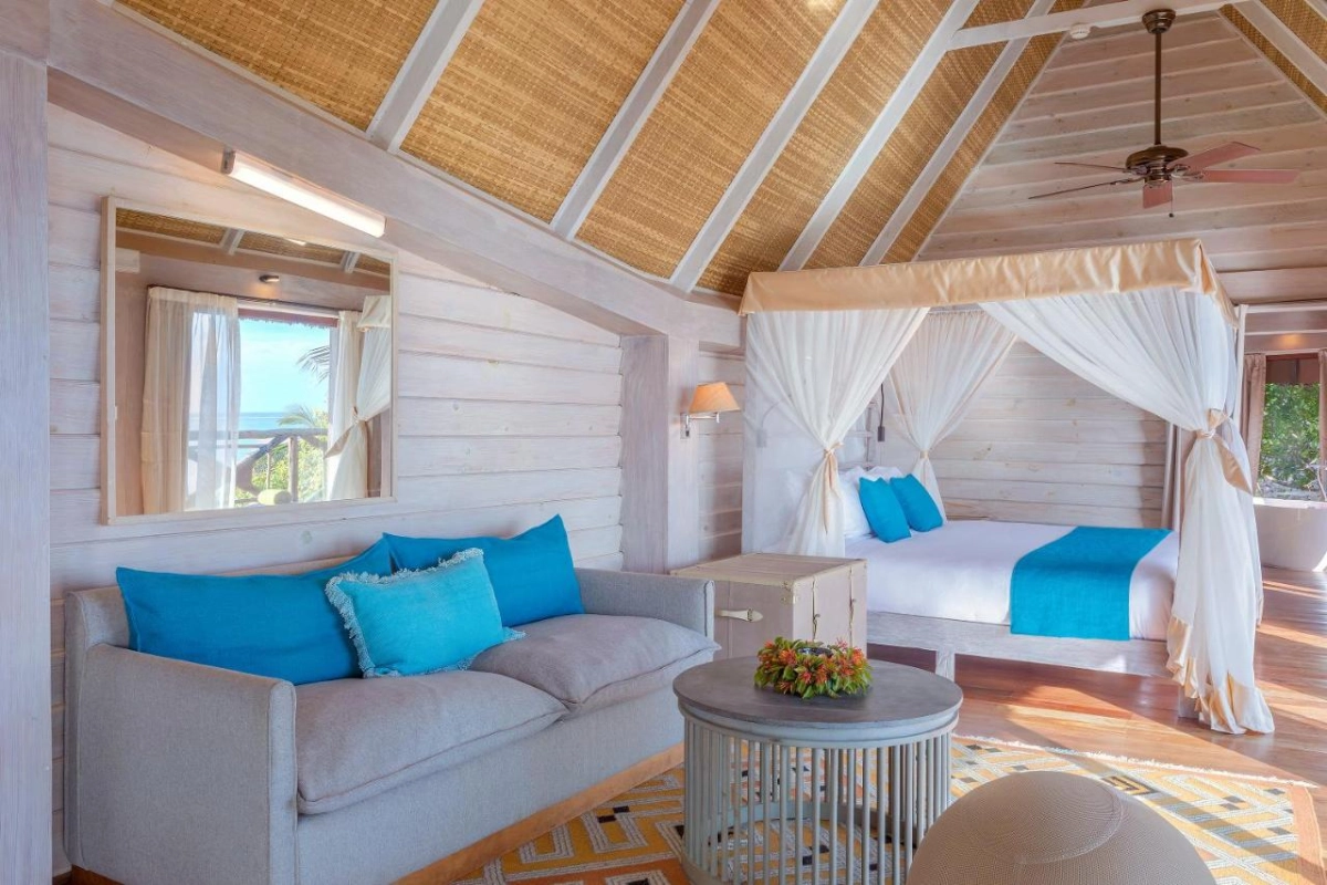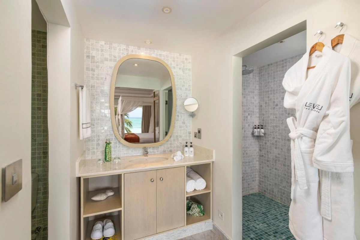 The resort's rooms and suites, designed for romance and relaxation, feature air-conditioned elegance, flat-screen TVs, tea and coffee facilities, and private bathrooms with premium amenities. Select accommodations offer terraces with sweeping sea views, while others overlook lush tropical gardens. Three distinct pools cater to varied desires: a vibrant outdoor pool for all guests, a serene spa pool for those over 16, and an exclusive pool in The Level area for adult guests seeking extra privacy. The spa, complete with a sauna, offers rejuvenating treatments infused with local essences, while a modern fitness centre and tennis court keep active travellers engaged. The private beach, framed by a natural coral reef, ensures safe and tranquil swimming.