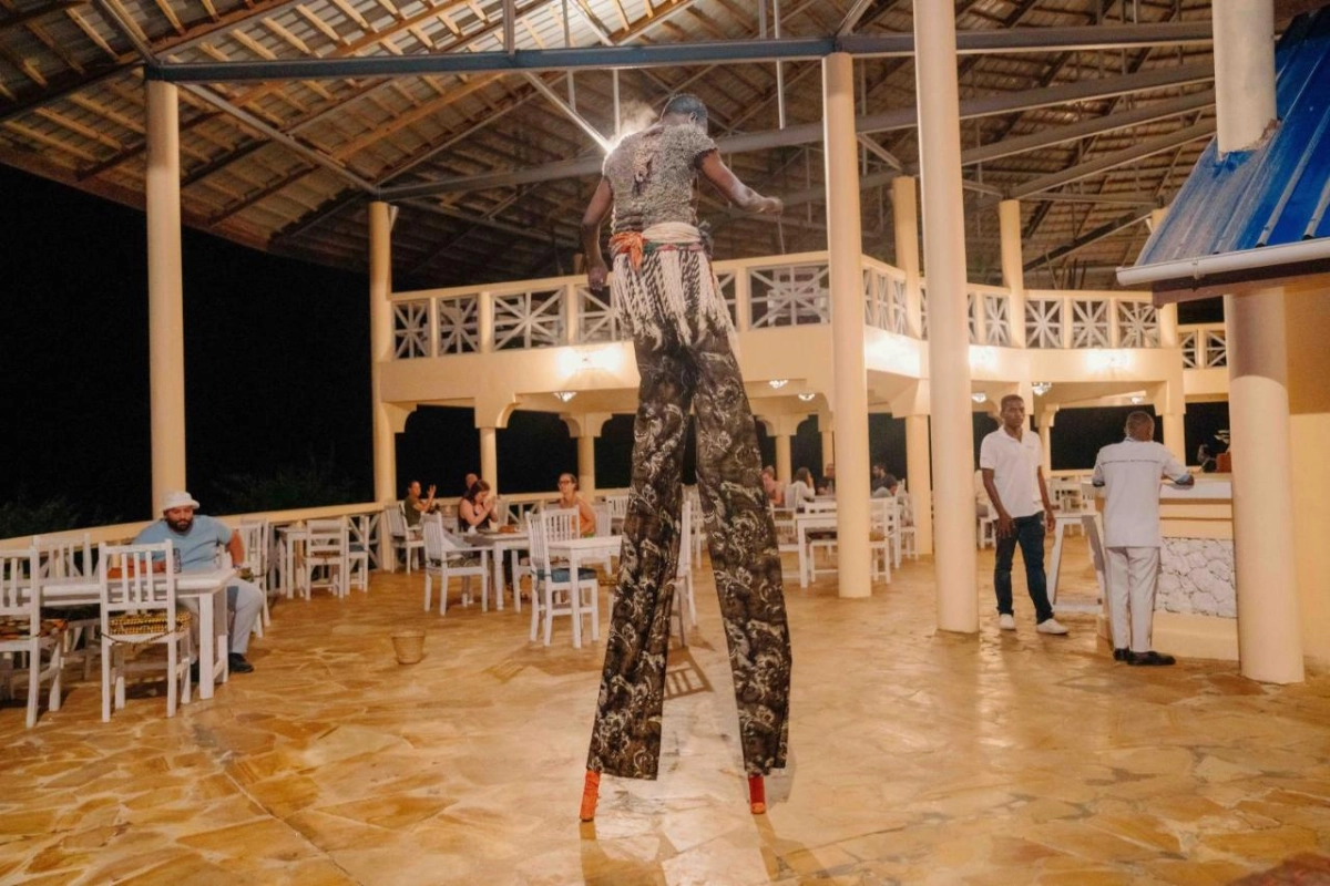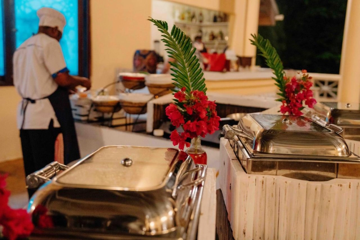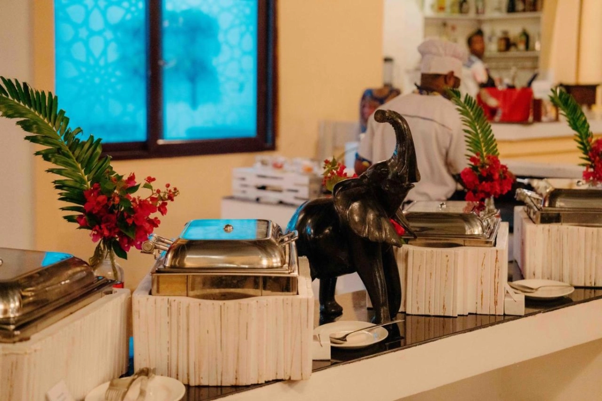Dining at Pearl Beach Resort is a coastal delight. The cliff-top restaurant, with panoramic ocean views, serves a blend of Zanzibari and international dishes, from fresh-caught fish with clove-infused sauces to vibrant salads bursting with tropical flavours. Breakfast features fresh pastries and island fruits, savoured with Indian Ocean breezes. The lounge bar, steps from the beach, crafts cocktails and non-alcoholic drinks, perfect for sipping during evening entertainment or beachside barbecues. Guests can embark on dhow excursions to explore the coral reefs, join guided snorkeling or fishing trips, or simply relax on the private beaches, immersed in the peninsula's untouched beauty.