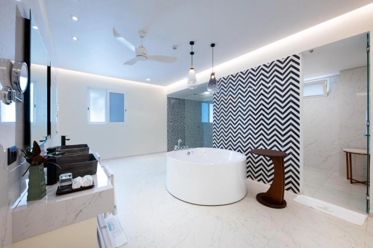 Dining at The Mora Zanzibar is a global delight. The main restaurant serves African specialties like spice-crusted fish, Brazilian churrasco, and Chinese-inspired dishes, with vegetarian, dairy-free, and halal options crafted to please. Breakfast unfolds with buffet, à la carte, or continental choices, featuring fresh island fruits and artisanal pastries. The beachfront bar mixes vibrant cocktails and light bites, perfect for savouring under the stars or during sunset. Guests can explore the nearby coral reefs through guided snorkeling or relax with beachside yoga, immersing in the tranquil rhythm of Muyuni Beach.
