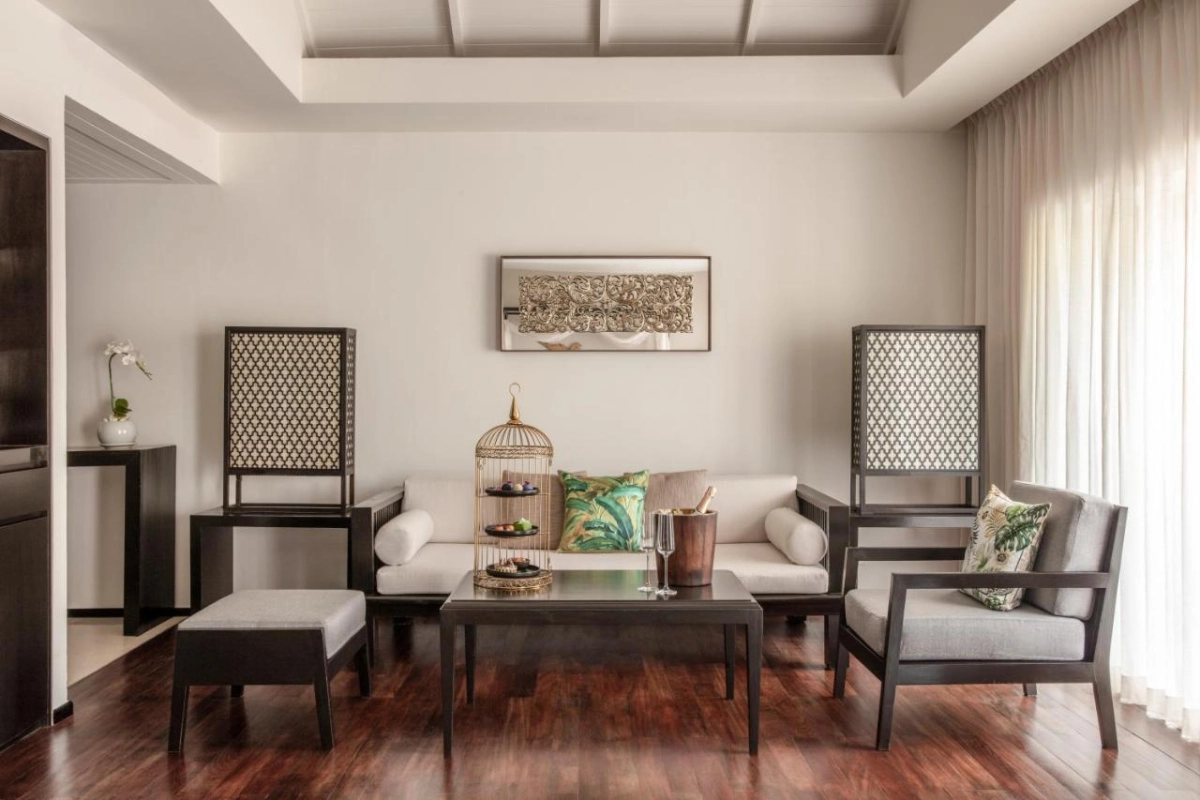 The 106 rooms and suites, infused with Southern Thai artistry, feature polished teak floors, vibrant silk accents, and private balconies with cozy lounge areas overlooking the Gulf of Thailand or verdant gardens. Spacious bathrooms, designed for indulgence, boast oversized bathtubs built for two, complemented by premium toiletries and soft robes. The Anantara Spa, a haven of relaxation, offers signature massages and wellness rituals inspired by Thai traditions, while a state-of-the-art fitness centre and beachfront yoga sessions invigorate body and mind. The shimmering spa pool and beachfront infinity pool invite leisurely dips with stunning sea views.