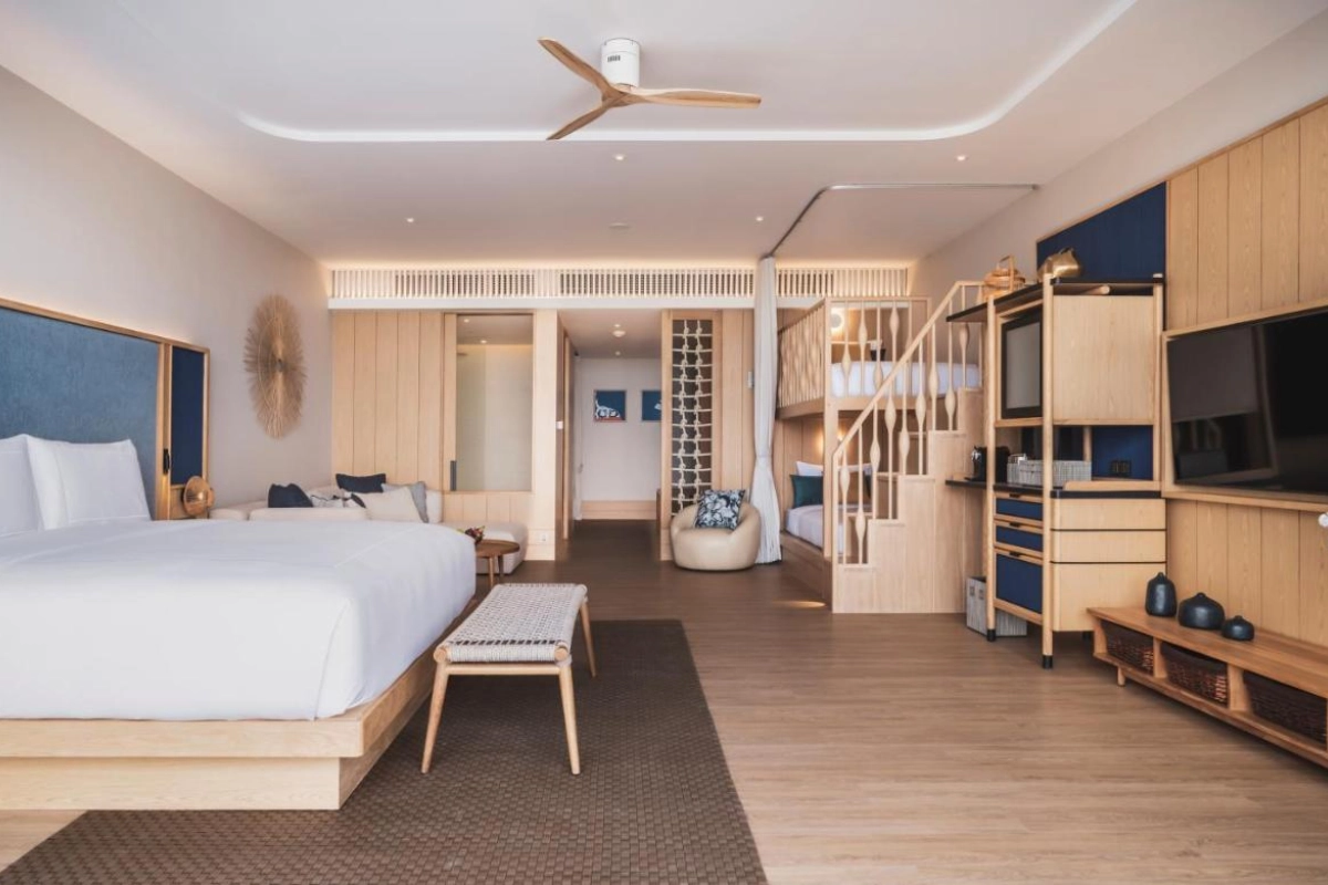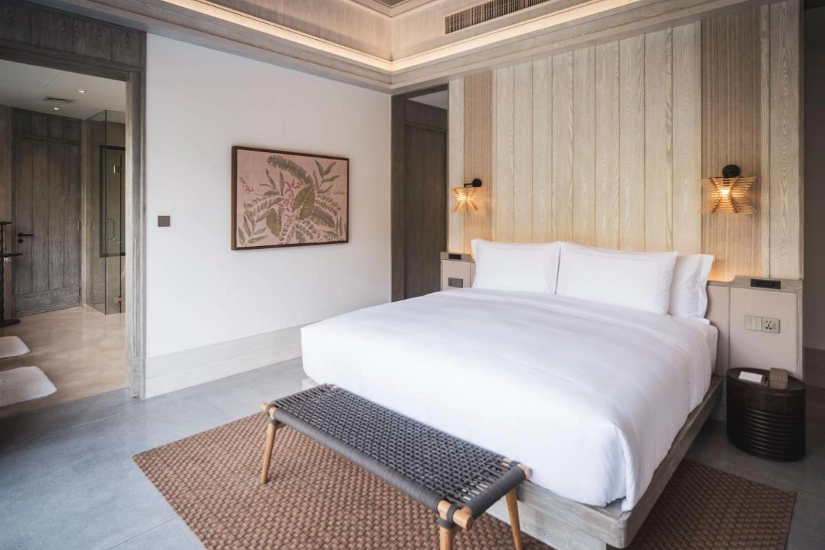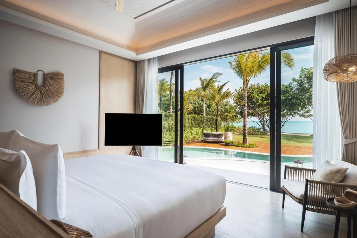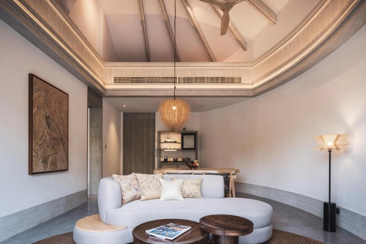 The 148 rooms and villas, designed with sleek Thai-inspired aesthetics, feature private balconies with sweeping views of the Andaman Sea or verdant gardens. Each space is equipped with modern comforts, including flat-screen televisions, coffee machines, minibars, and spacious bathrooms with invigorating rain showers, all complemented by plush linens and elegant furnishings. The resort's wellness offerings include a state-of-the-art fitness centre, a shimmering outdoor infinity pool, and a serene spa delivering bespoke treatments inspired by Thai traditions. Guests can explore the island with complimentary bicycles or unwind on the private beach, fringed by turquoise waters.