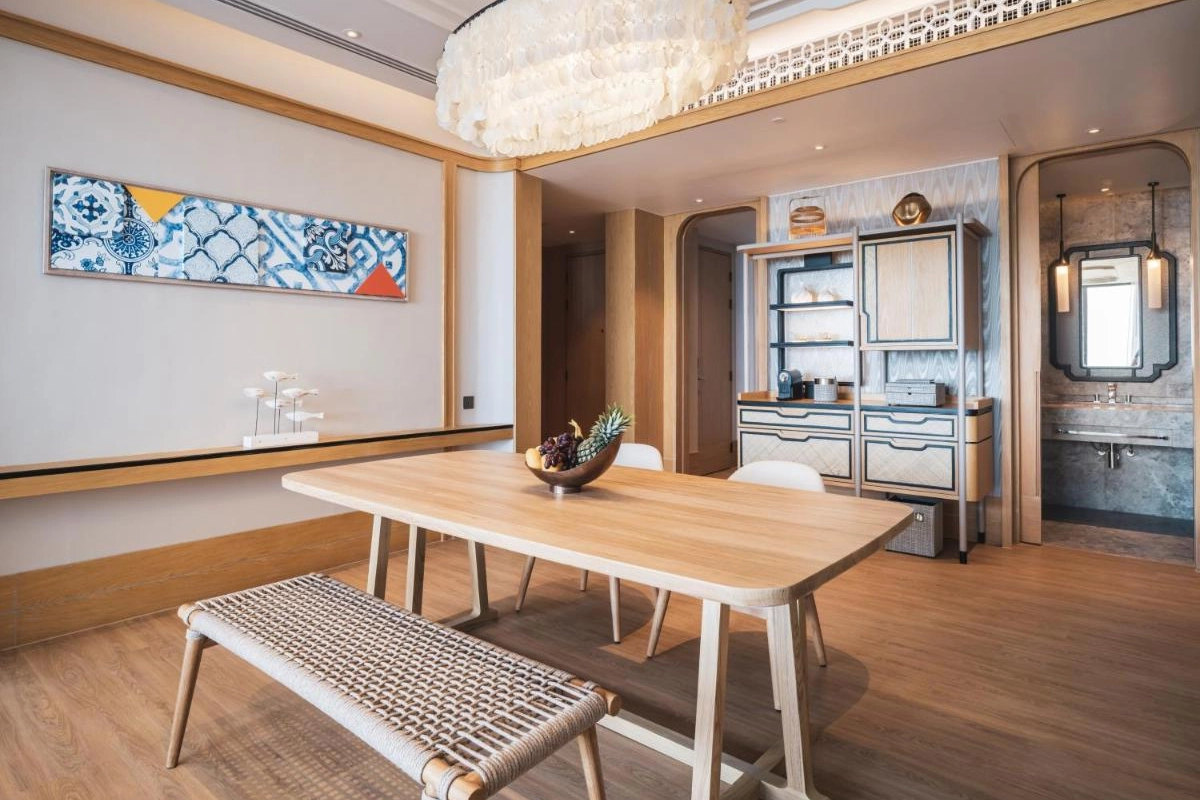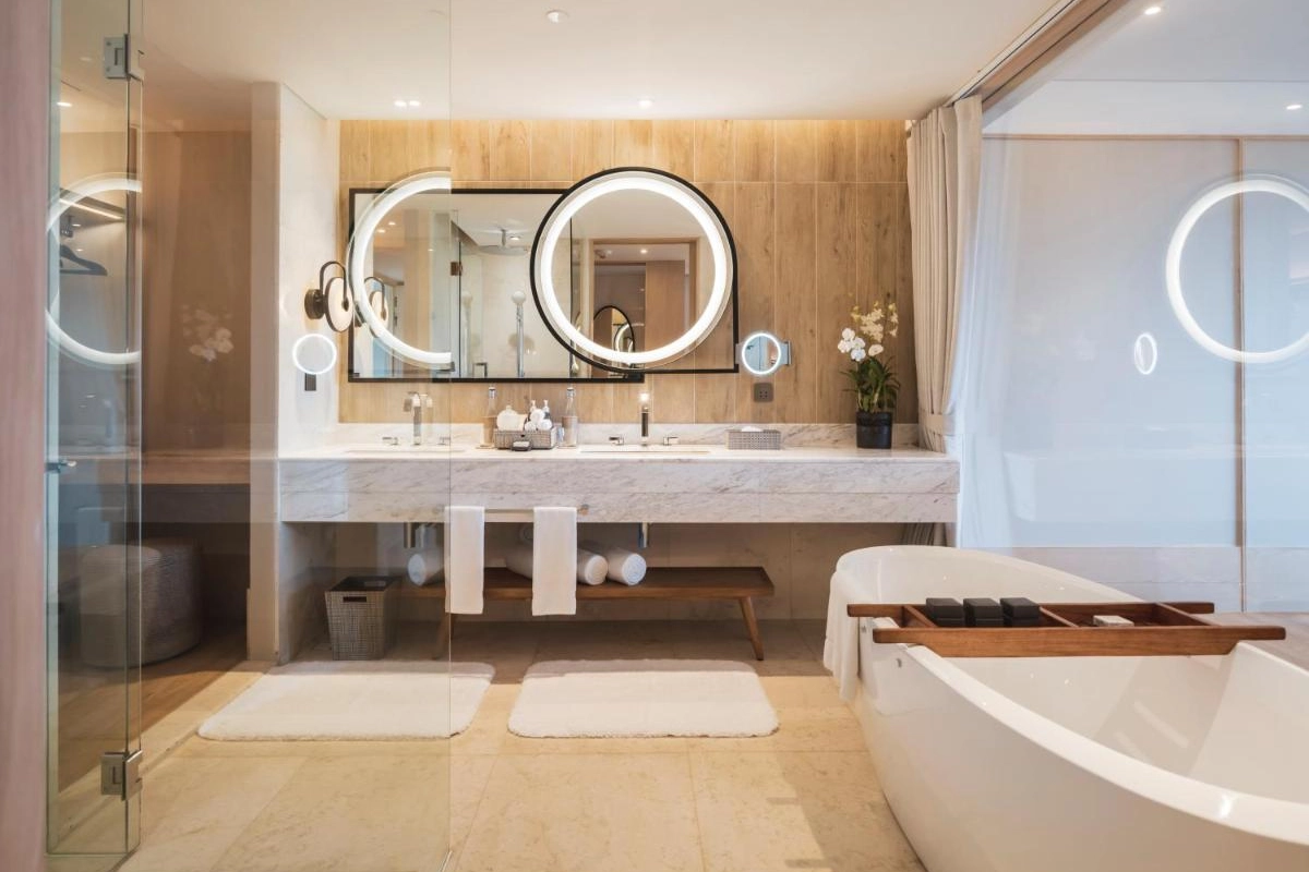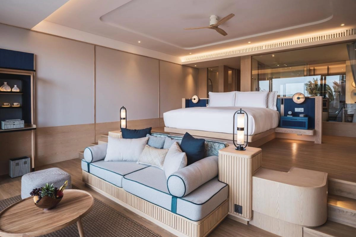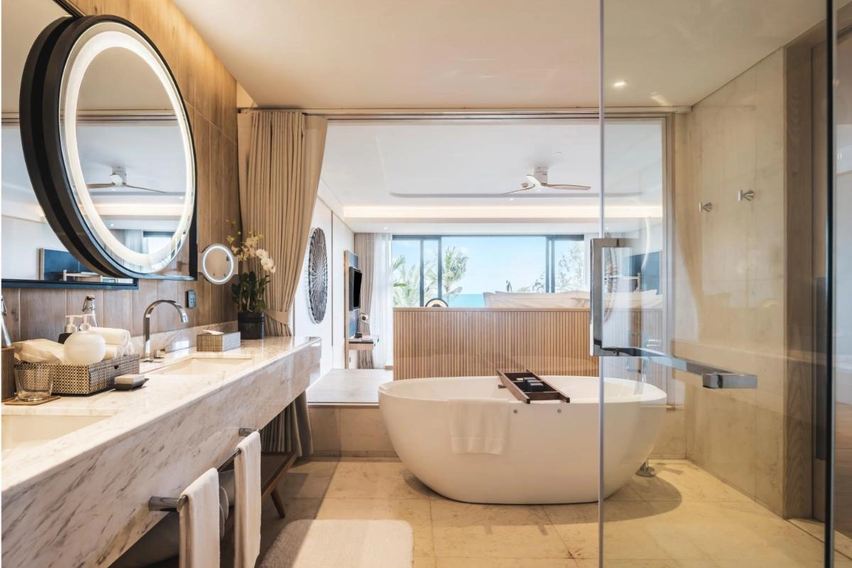The 148 rooms and villas, designed with sleek Thai-inspired aesthetics, feature private balconies with sweeping views of the Andaman Sea or verdant gardens. Each space is equipped with modern comforts, including flat-screen televisions, coffee machines, minibars, and spacious bathrooms with invigorating rain showers, all complemented by plush linens and elegant furnishings. The resort's wellness offerings include a state-of-the-art fitness centre, a shimmering outdoor infinity pool, and a serene spa delivering bespoke treatments inspired by Thai traditions. Guests can explore the island with complimentary bicycles or unwind on the private beach, fringed by turquoise waters.