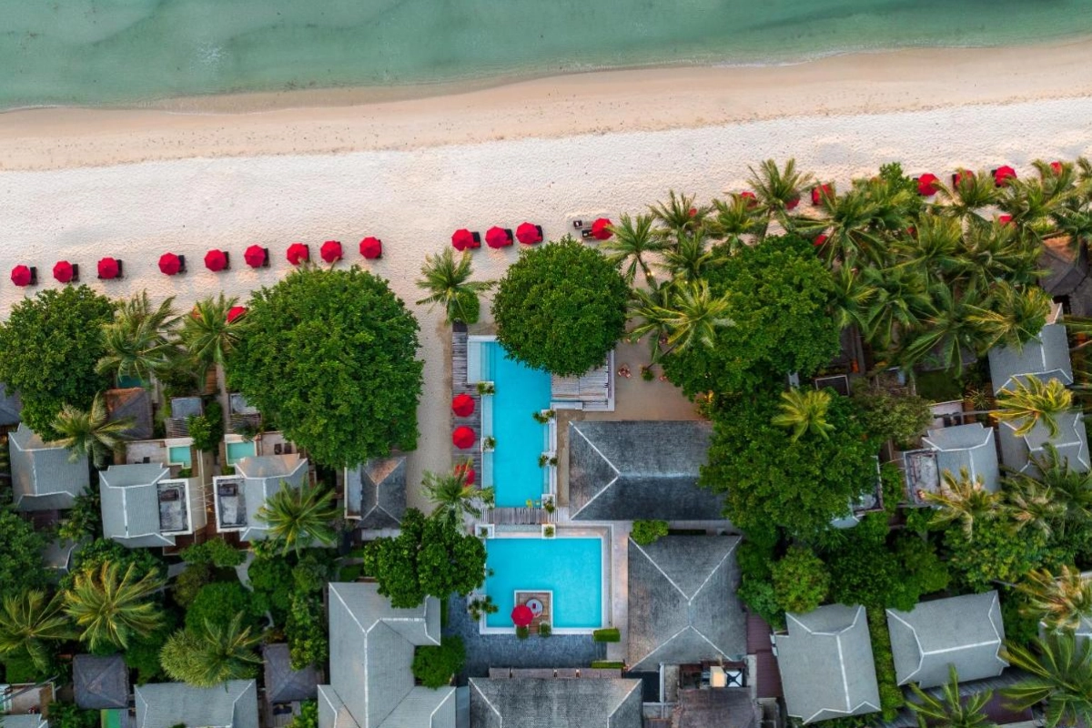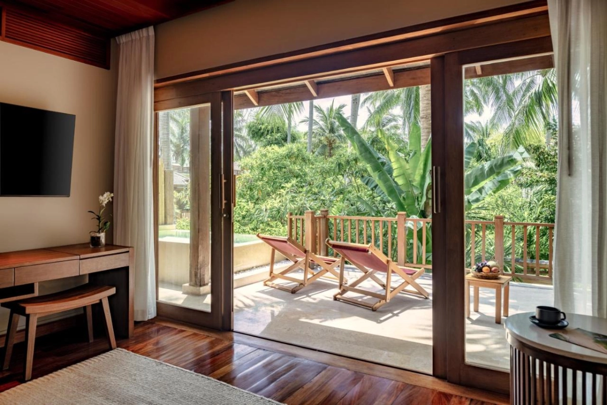 Anantara Rasananda Koh Phangan Villas, a five-star adults-only retreat on the pristine Tong Nai Pan Noi Beach, Koh Phangan, Thailand, is a distinguished member of Leading Hotels of the World. Nestled at the base of a lush mountain among towering coconut palms, this luxurious sanctuary offers an intimate escape with modern Thai elegance.