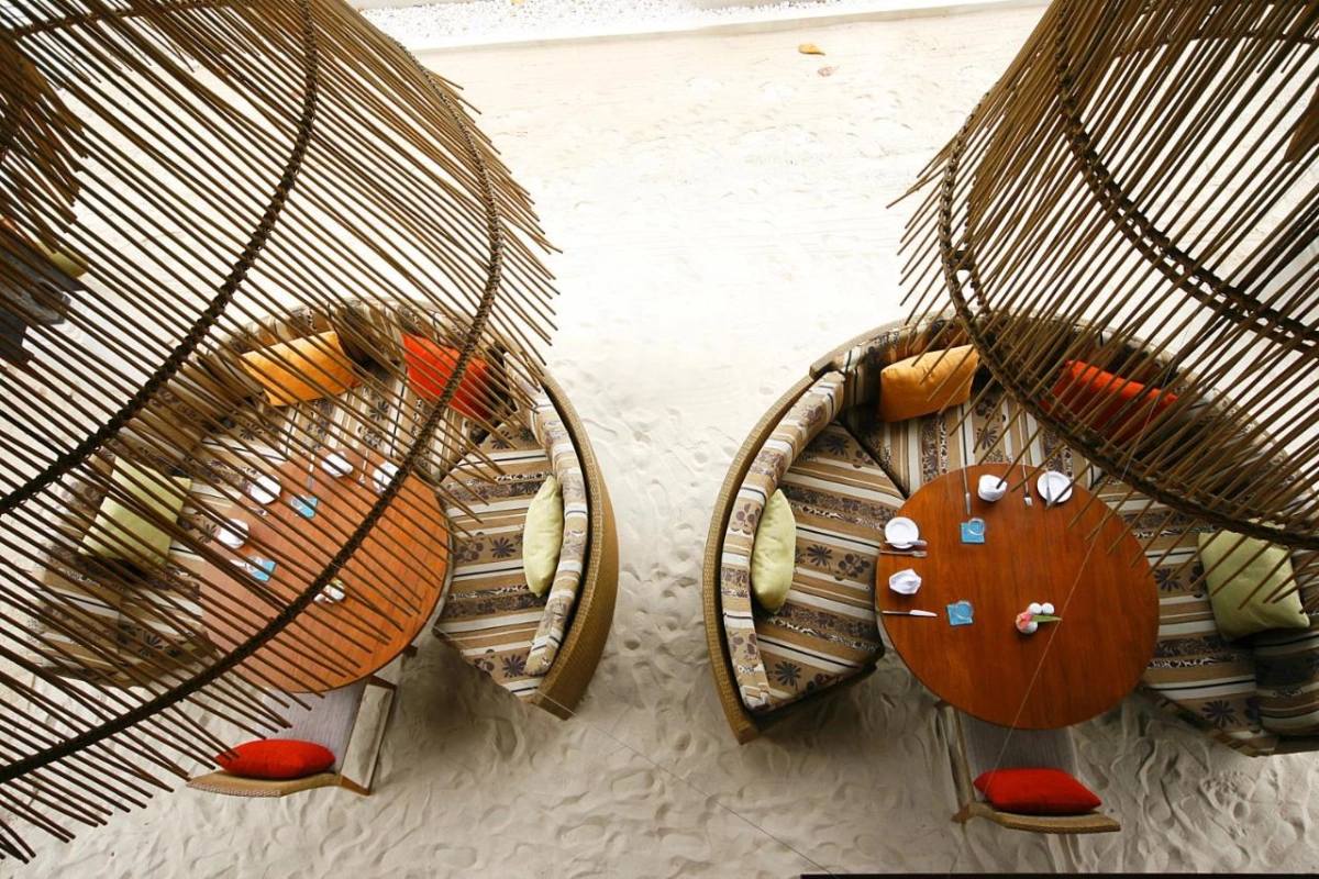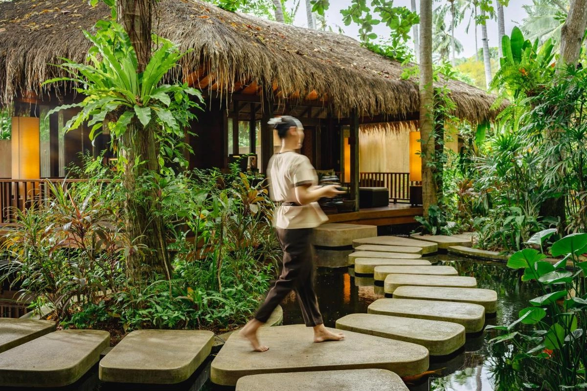 The 64 suites and villas, ranging from 100 to 250 square meters, blend seamlessly with their tropical surroundings, featuring wood and stone accents, hand-woven silks, and 500-thread-count linens on “blissful dreams” mattresses. Each villa boasts a private plunge pool, terrace, 55-inch LCD television with Apple TV, home entertainment system, iPod docking station, espresso machine, and spacious bathrooms with rejuvenating rain showers. The Anantara Spa provides in-villa massages and tailored wellness treatments, while a cutting-edge fitness room and beachfront yoga sessions offer invigorating escapes. A serene library with international magazines enhances the tranquil ambiance.