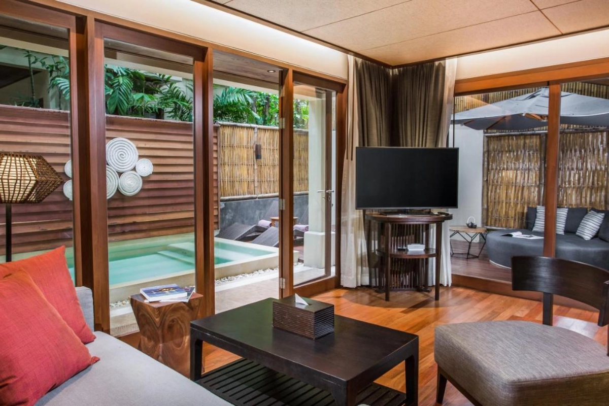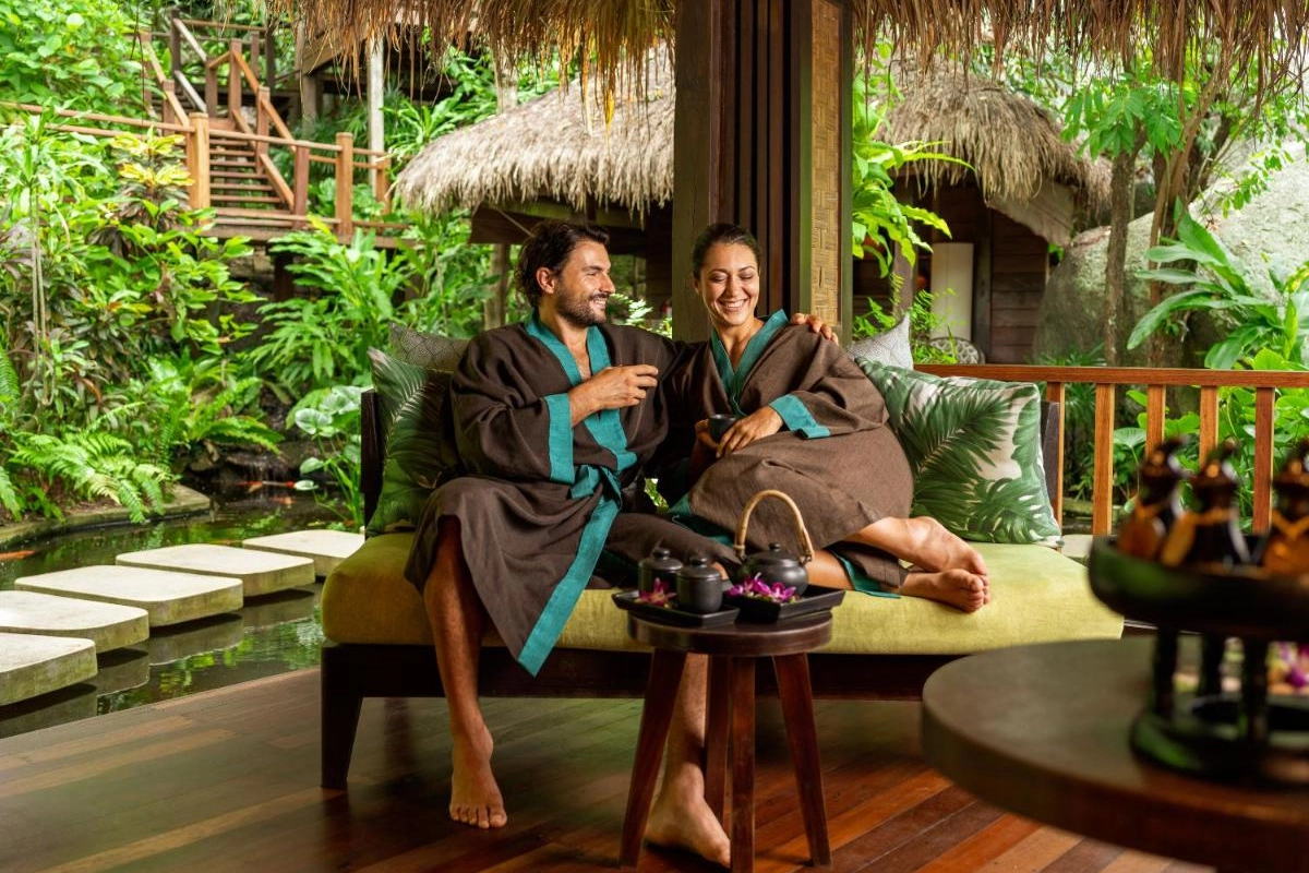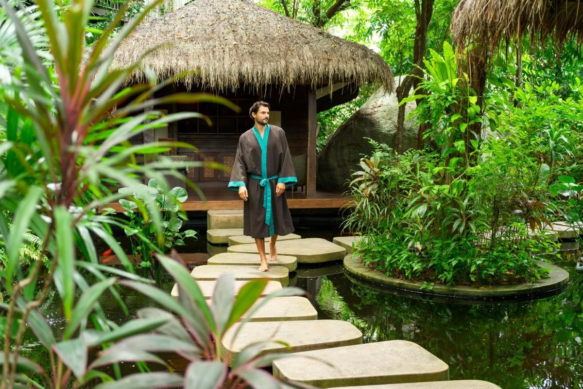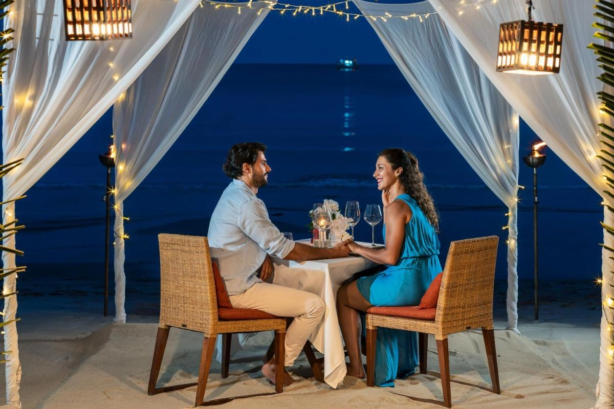 Dining is a sensory journey at Bistro @ The Beach, where outdoor tables frame sea views and a menu blends local Thai flavours with Western dishes, from spicy som tam to fresh seafood platters. Yukinoya delights with fine Japanese cuisine, including signature teppanyaki and sushi, served daily alongside a curated champagne and wine lounge. Private beach dining elevates intimate moments under the stars. Guests can explore the island with curated excursions, such as private boat tours or cycling through lush trails, arranged by the attentive staff.