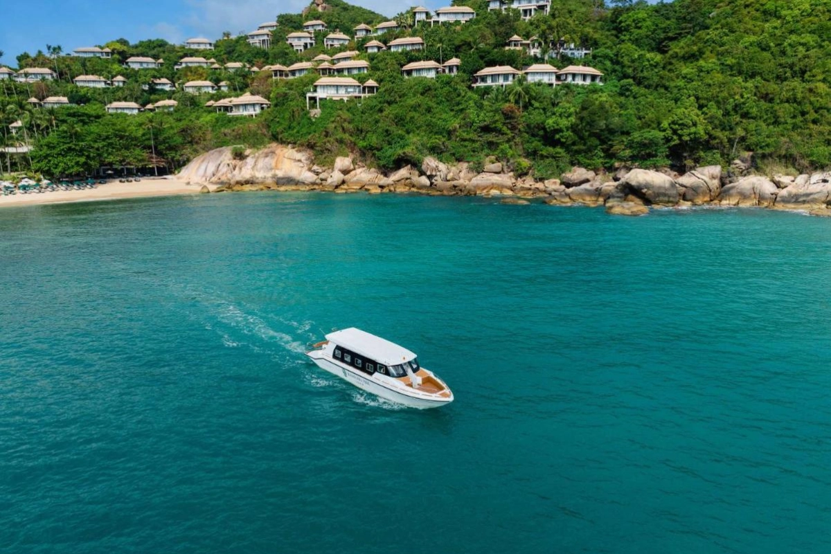Each of the 88 spacious villas features private infinity pools and terraces with sweeping views of the sapphire Gulf of Thailand or lush tropical greenery. Adorned with modern Thai elegance, villas include flat-screen cable televisions, DVD players, iPod docks, and expansive bathrooms with floor-to-ceiling windows and twin vanities. The Rainforest Spa indulges with rejuvenating body treatments and massages, while a state-of-the-art fitness centre, library, and beauty salon enhance leisure. Guests can explore the island with curated activities like diving, cycling, or fishing, arranged by the attentive staff.