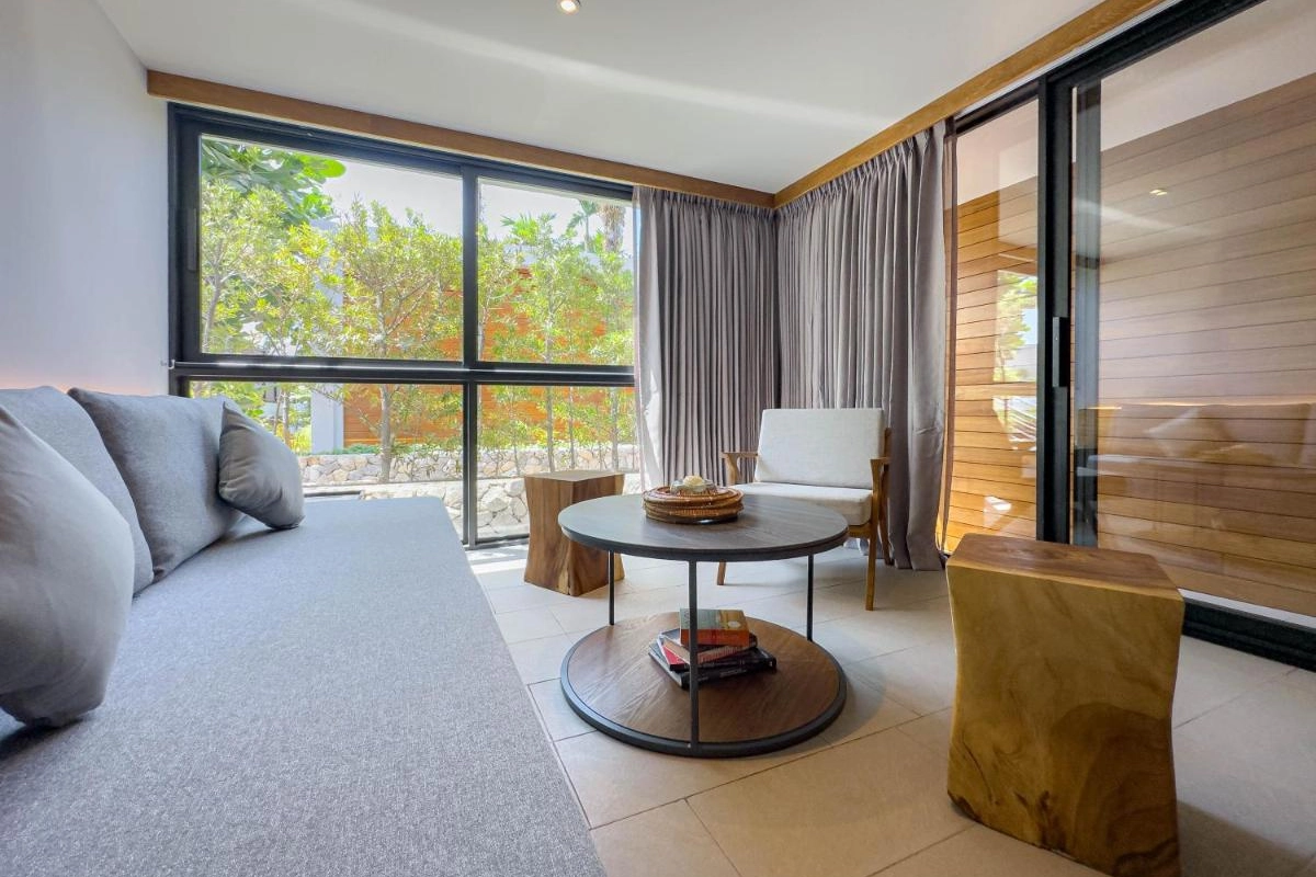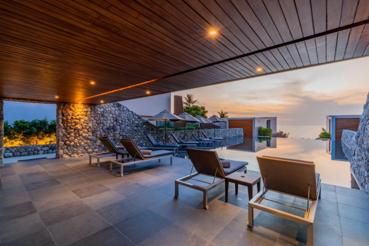 The 34 slate-grey cube villas, available in six distinct categories, showcase expansive glass facades framing panoramic sea views, private sun decks, and individual pools. Each villa is equipped with flat-screen televisions, vibrant iPod docks, complimentary minibars stocked with snacks, and spacious bathrooms with rain showers and premium toiletries. Duplex two-bedroom villas offer flexible bedding options with king-size or twin beds. The spa provides rejuvenating massages, while a state-of-the-art fitness centre and yoga sessions invigorate guests. Complimentary water sports equipment and bicycles encourage exploration of the coastal surroundings.