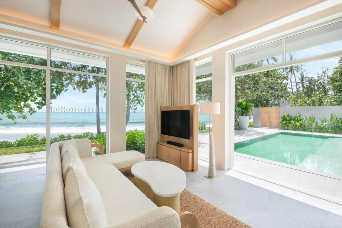 The 184 suites and villas, ranging from pool-access rooms to ocean-facing villas, exude refined luxury with sleek furnishings, private terraces, flat-screen televisions, and spacious bathrooms featuring rain showers and premium toiletries. Select accommodations include dedicated Reserve Hosts, Centara's bespoke butler service, ensuring personalized indulgence. The holistic spa offers rejuvenating treatments rooted in Thai wellness traditions, while a state-of-the-art fitness centre and yoga pavilion invigorate guests. The shimmering infinity pool, nestled in lush gardens, invites serene relaxation with views of the Gulf of Thailand.