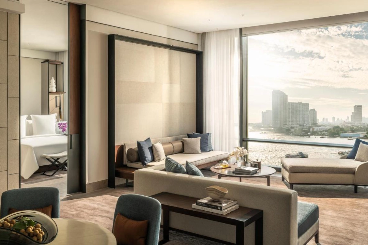 The 299 guest rooms and suites feature hand-selected furnishings, abundant natural light, and modern comforts, including air conditioning, flat-screen televisions with satellite channels, coffee machines, safety deposit boxes, and private bathrooms with bidets, hairdryers, and premium toiletries. Select rooms offer private balconies with river or pool views, complemented by plush slippers and in-room iPads. The resort's two outdoor swimming pools, lush gardens, hot tub, and state-of-the-art fitness centre invite relaxation, while the spa offers rejuvenating treatments rooted in Thai wellness traditions.