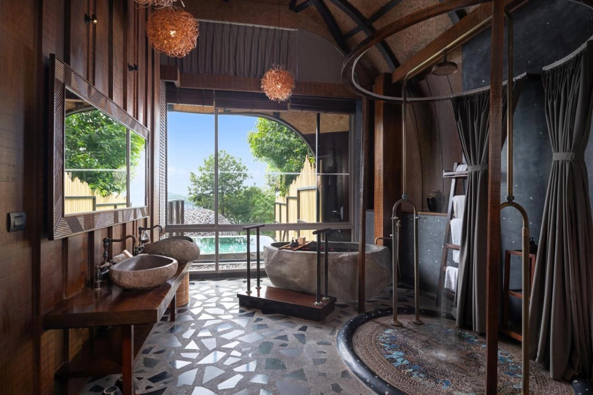 The 38 cottages, treehouses, and pool villas, designed around the hillside's unique topography, feature private pools, terraces with woodland or sea views, multimedia systems, and sumptuous Egyptian cotton bedding. En-suite bathrooms boast standalone bathtubs, monsoon showers, and outdoor showers in most units. The Mala Spa, with eight treatment rooms, offers Thai-inspired massages, steam and sauna facilities, and yoga spaces with sea views. A fitness centre and curated wellness programs, including meditation, enhance rejuvenation.