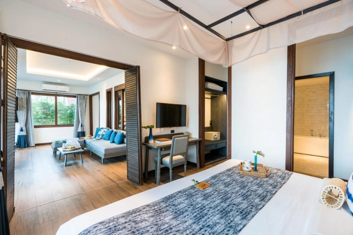The 122 stylish rooms, suites, and villas, including private pool villas and suites with direct beach access, feature air-conditioned comfort, flat-screen TVs, tea and coffee makers, minibars, and spacious bathrooms with hairdryers and premium toiletries. Private terraces unveil breathtaking sea or lush garden views, crafting intimate sanctuaries for relaxation. The design merges contemporary elegance with subtle Thai accents, ensuring a restful and refined stay.