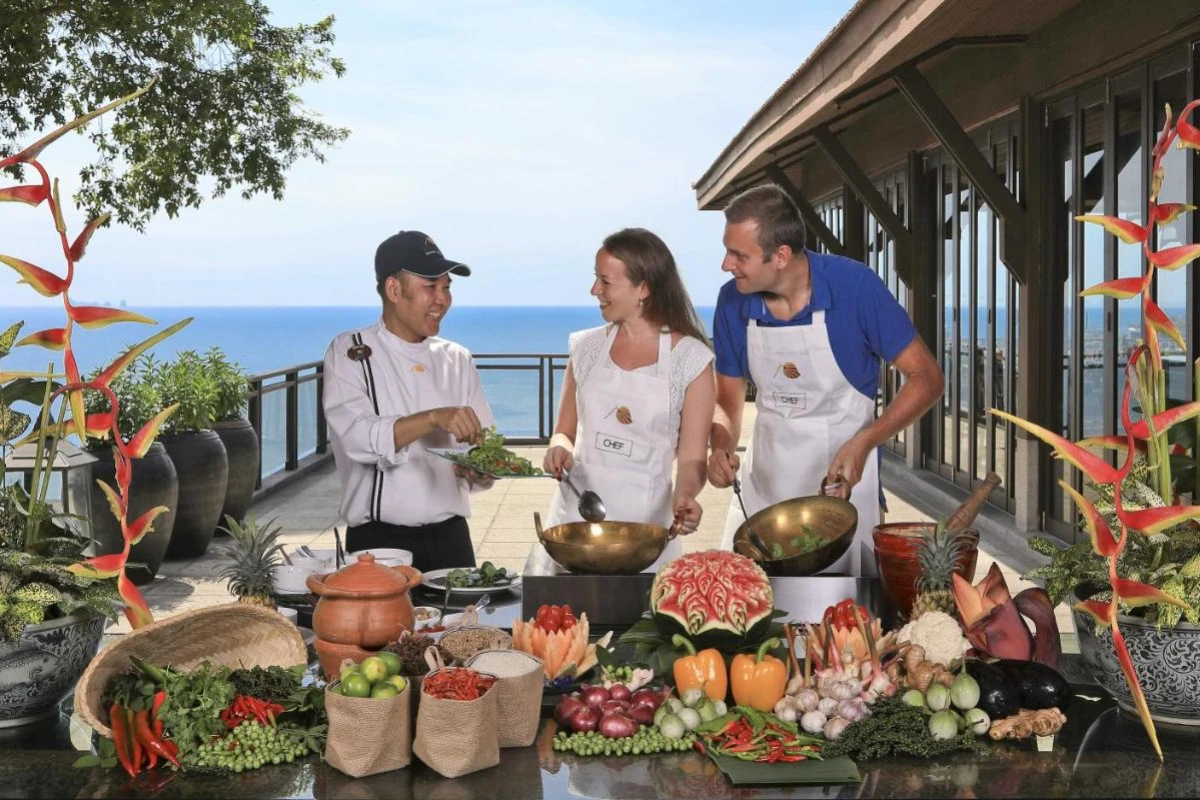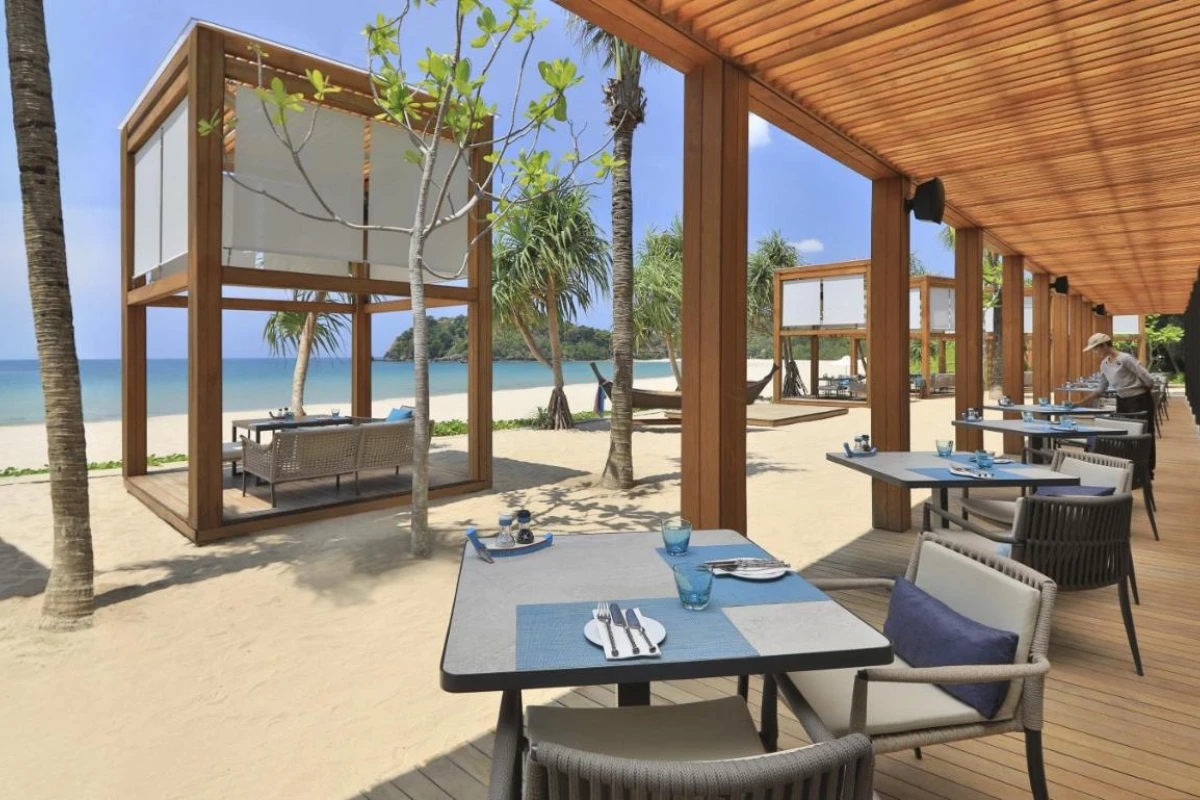 The 121 spacious rooms, suites, and pool villas, adorned with rich Thai fabrics, rattan curtains, and polished teak floors, feature air-conditioned serenity, flat-screen TVs, DVD players, and private balconies or sun decks with captivating views of Ba Kan Tiang Bay, gardens, or the Andaman Sea. Private bathrooms include premium toiletries and deep-soaking tubs, while select villas offer personal infinity-edge pools, crafting intimate escapes for relaxation.