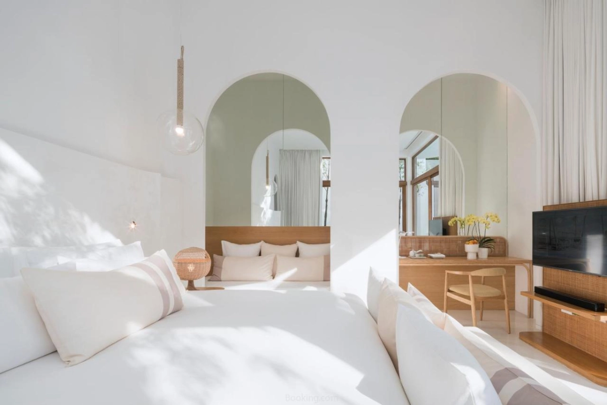 The 134 rooms, pool villas, and suites feature handcrafted furnishings, air-conditioned serenity, cable and satellite TVs, well-stocked minibars, and bathrooms with invigorating hot-water showers, premium toiletries, and hairdryers. Oceanfront Wing accommodations include private pools and direct sea views, while Garden Wing rooms offer tranquil garden or pool vistas. Private balconies or terraces enhance each space, creating intimate retreats infused with cultural charm.