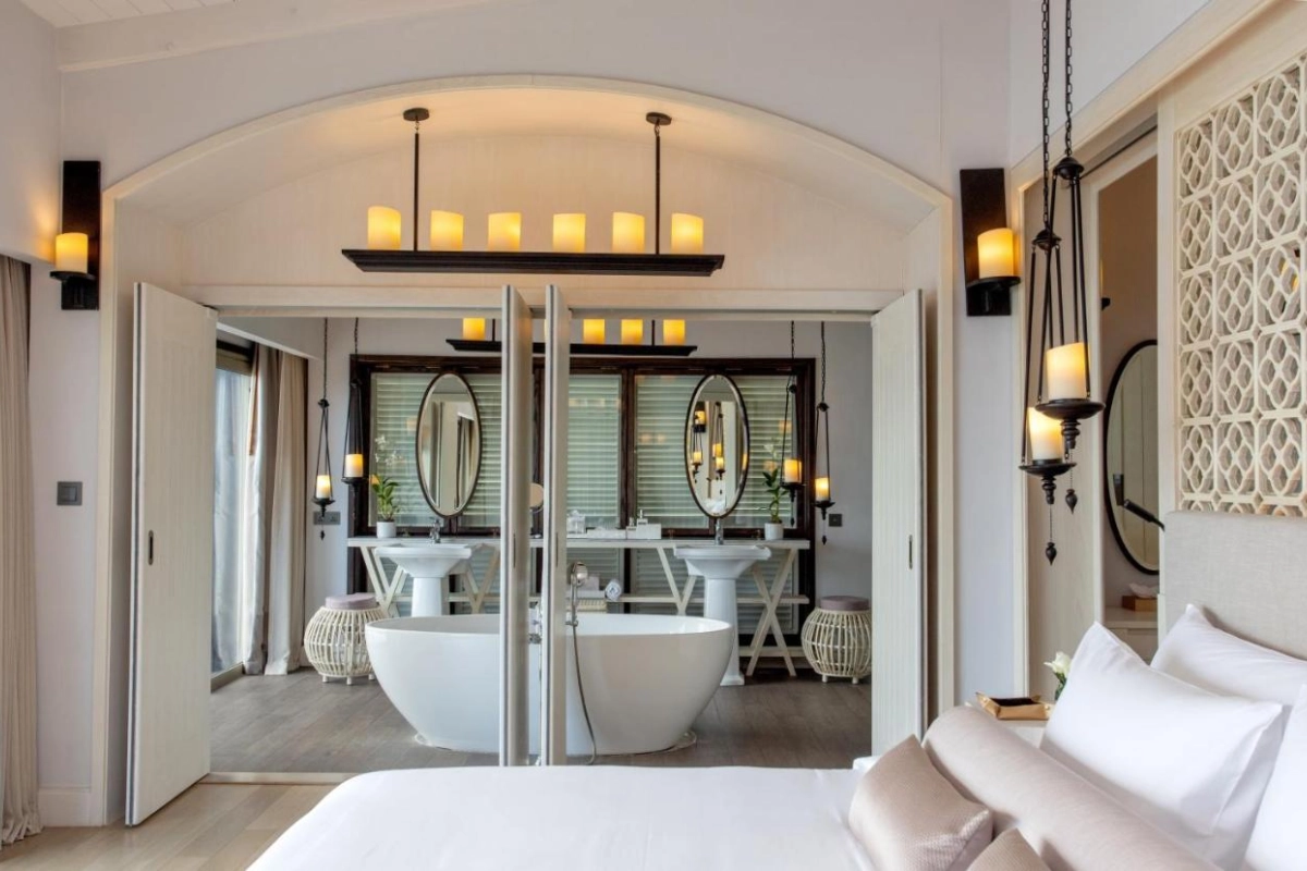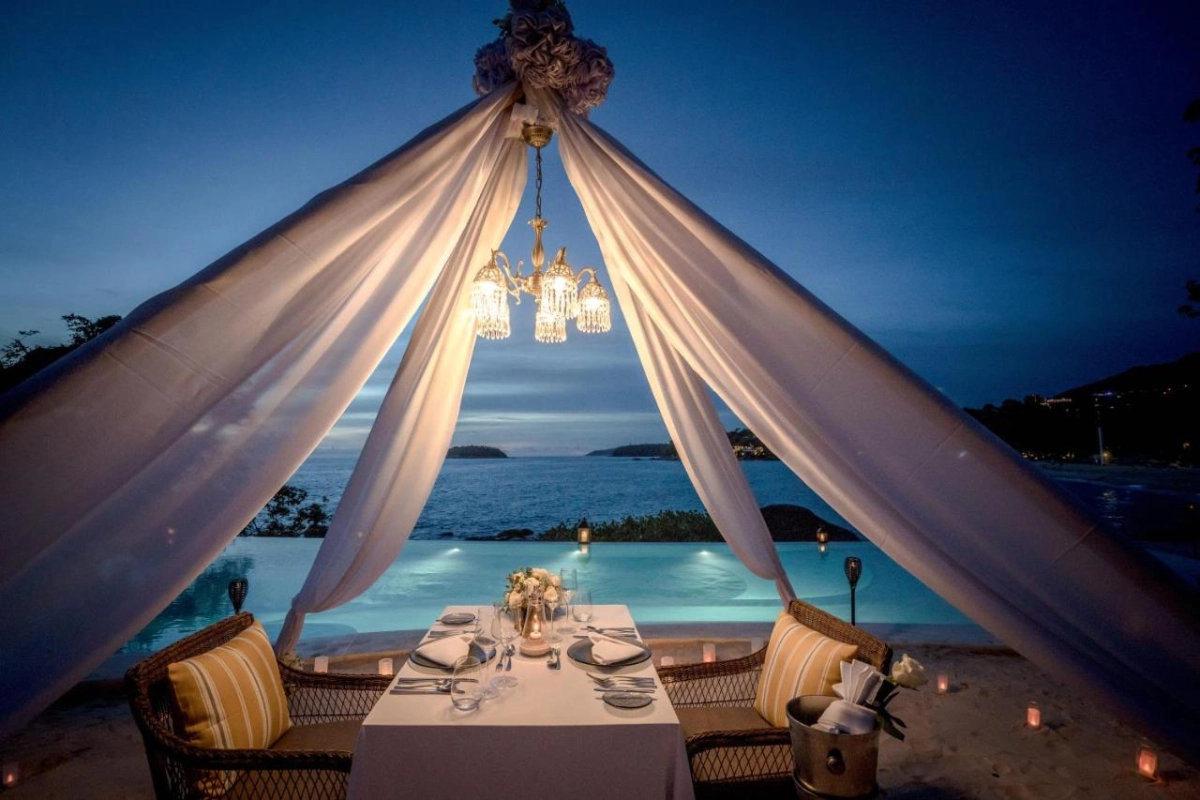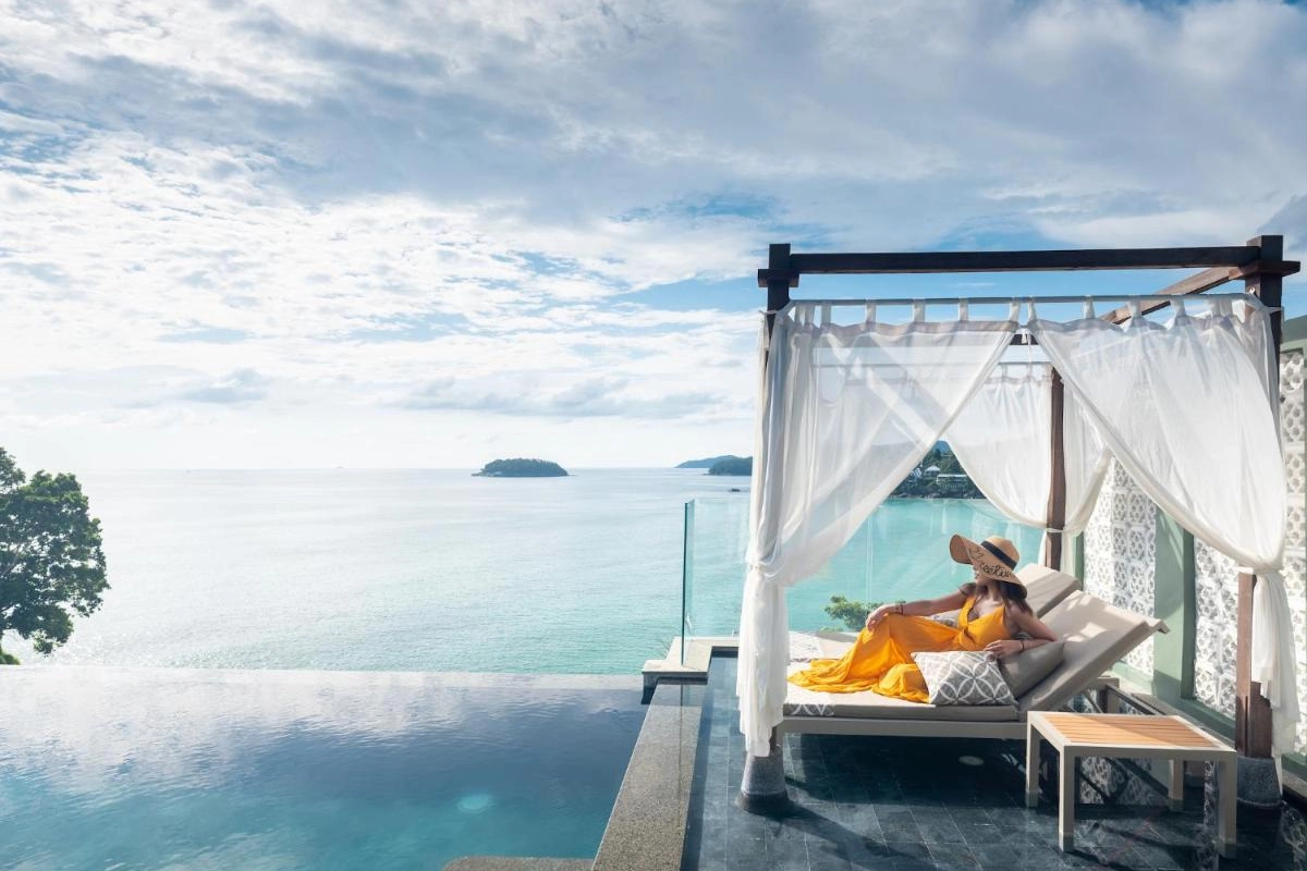 The 49 stylish villas feature air-conditioned sophistication, polished wooden flooring, large glass doors opening to private sundecks, flat-screen TVs, well-stocked minibars, and sumptuous bathrooms with bathtubs and premium toiletries. Each villa's private infinity pool and spacious terrace offer uninterrupted sea views, crafting secluded retreats for couples. The resort's design seamlessly blends indoor-outdoor living with Phuket's tropical beauty.
