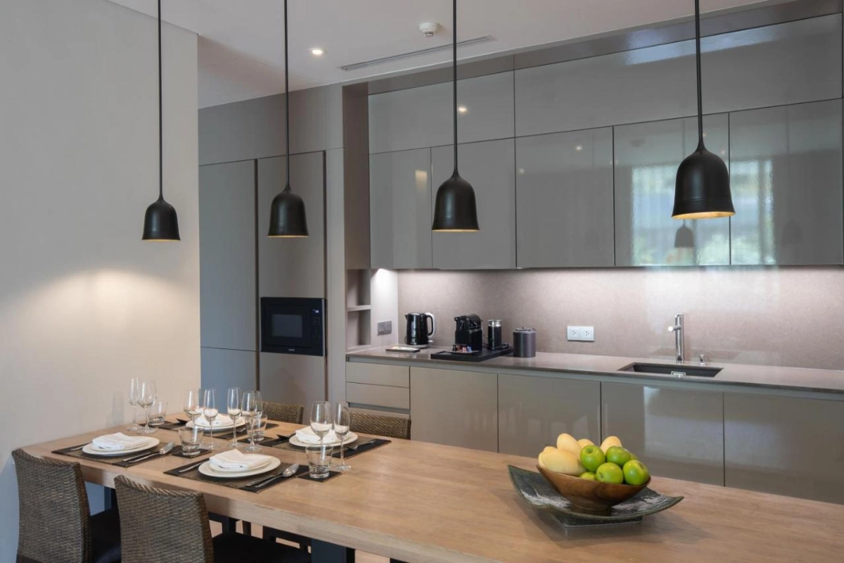 The 46 elegantly appointed suites and penthouses feature air-conditioned sophistication, private balconies or terraces with captivating sea, pool, or tropical mountain views, flat-screen TVs, well-stocked minibars, refrigerators, kettles, safety deposit boxes, and private bathrooms with showers and premium toiletries. Select accommodations include private rooftop pools, crafting serene havens of modern luxury. The resort's contemporary design blends seamlessly with its lush surroundings.