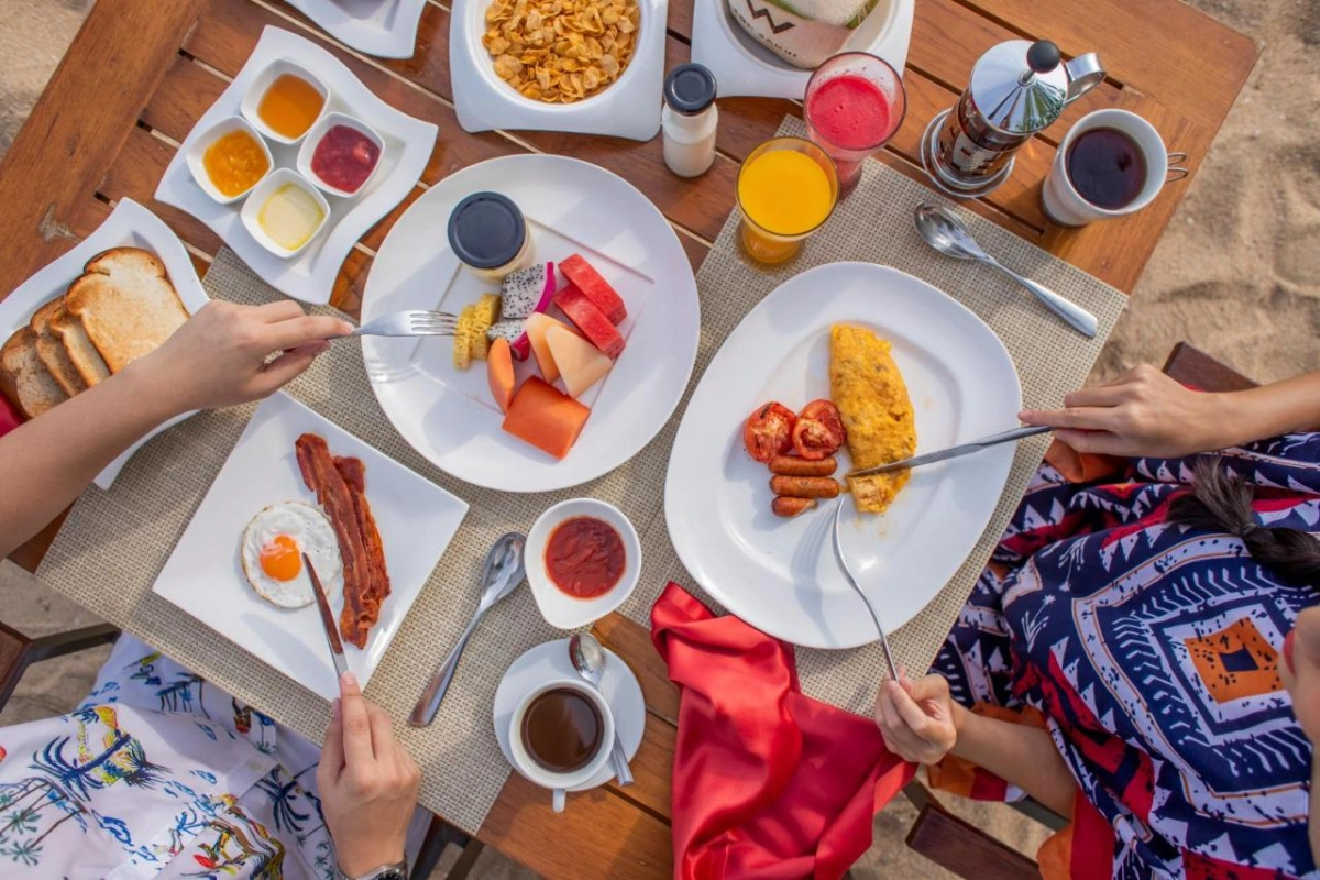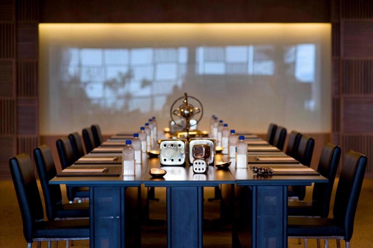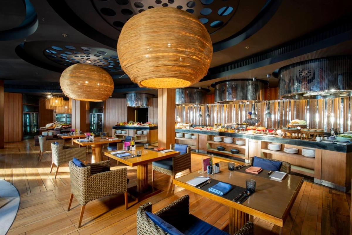 Dining at The Kitchen Table offers Thai and international dishes in a casual setting, while NAMU serves chic Japanese cuisine beachside. WOOBAR crafts signature cocktails with iconic Gulf views, and SIP sunset bar pairs craft beers with tropical hardwood furnishings. Guests can unwind at AWAY Spa with essential oil massages and herbal baths, stay active at the FIT gym or with complimentary yoga, Muay Thai, and water aerobics classes, or bask by the main infinity pool or beachside water sports centre. THE SWEET SPOT provides complimentary soft drinks and ice cream, enhancing the vibrant experience.