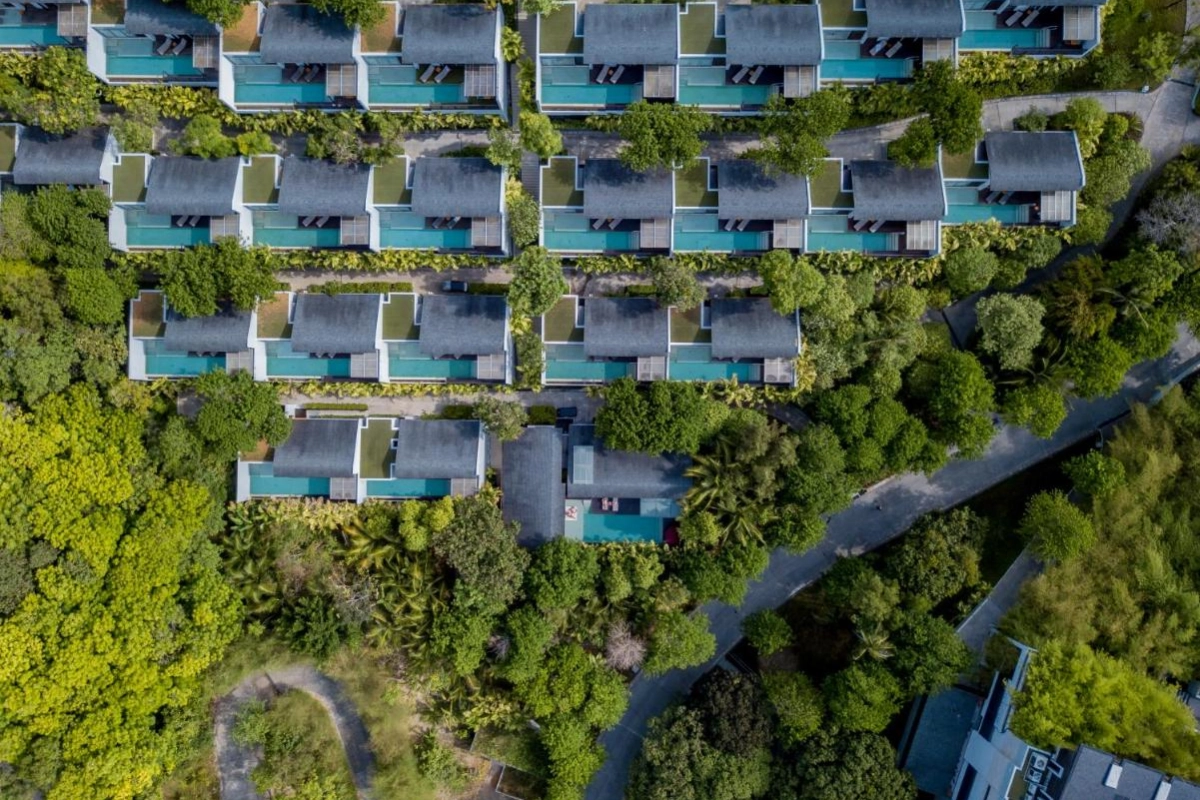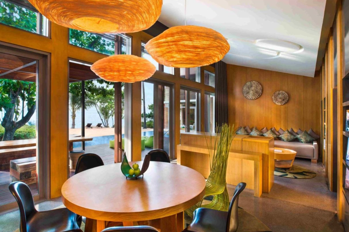 The 74 stylish villas, each with a private outdoor pool, feature air-conditioned sophistication, large decks with infinite island views, 46-inch flat-screen TVs, DVD players, Yamaha WiFi sound docks, Illy espresso machines, and Bliss Spa amenities. Bathrooms include 22-inch flat-screen TVs, premium toiletries, and bubble baths, while 350-thread-count Egyptian cotton sheets and goose down duvets ensure restful sleep. The design, with silk lamps and designer furnishings, exudes relaxed elegance.