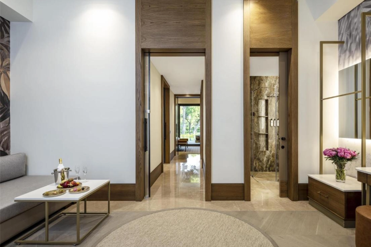 The 175 rooms and suites exude sophistication, featuring air-conditioned comfort, flat-screen TVs, minibars, and marble bathrooms with bathtubs and showers, complemented by premium toiletries. Many rooms offer balconies with views of the Mediterranean Sea or Taurus Mountains, creating a refined retreat for couples or golf enthusiasts seeking elegance.