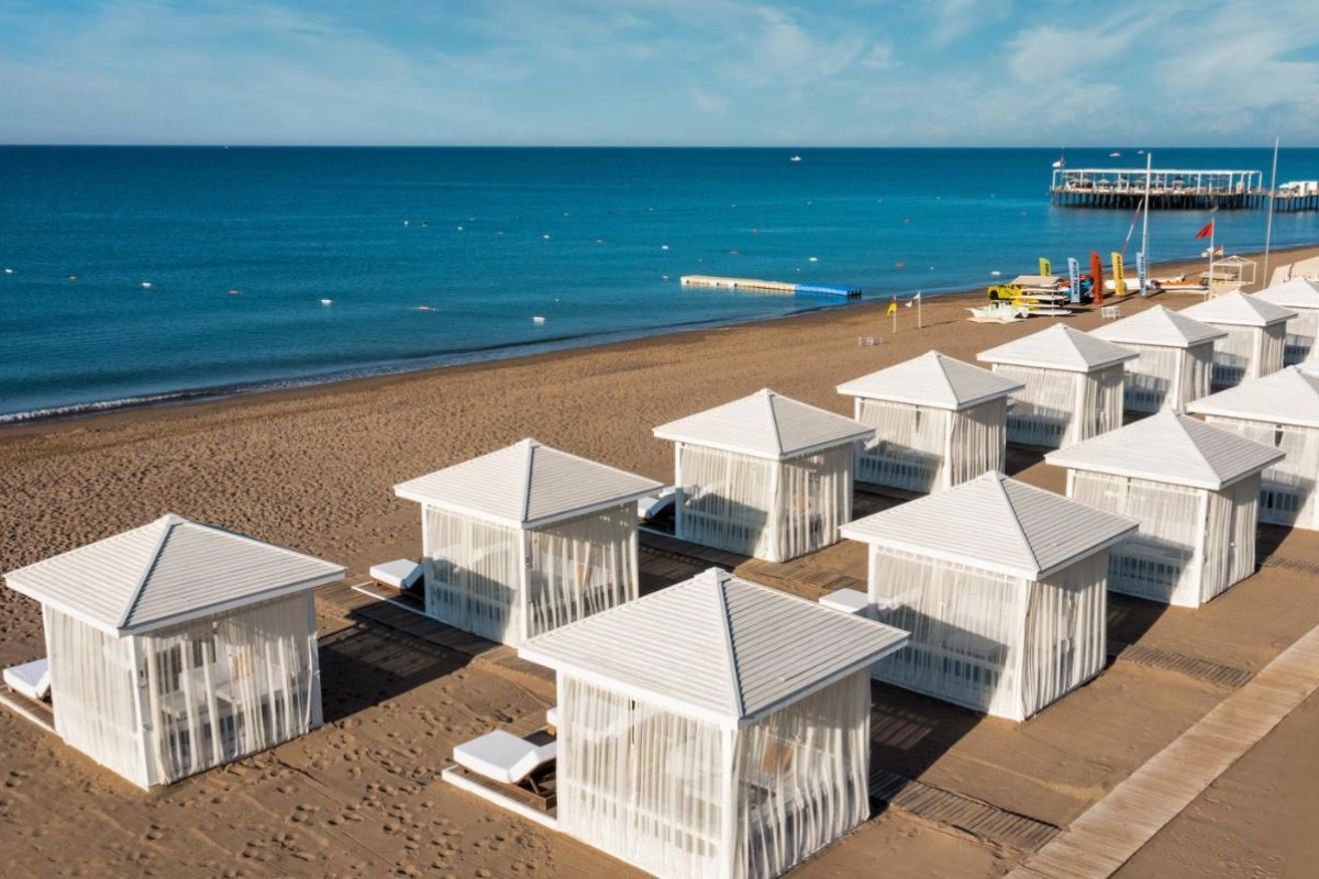 Dining delights at Tuğra Restaurant with authentic Ottoman cuisine, from rich kebabs to delicate baklava, while Papillon Restaurant serves international dishes with global flair. Le Chocolat tempts with artisanal desserts and pastries, perfect for a sweet indulgence. The Dome Bar crafts chic cocktails in a vibrant setting, and the Beach Bar offers refreshing drinks by the sea. Leisure thrives with a large outdoor pool, a heated indoor pool, and a private sandy beach with a pier for watersports like windsurfing and sailing. The 3,600 sqm Dome Spa pampers with massages, therapies, and a sauna, while a fitness centre, tennis courts, and beach volleyball cater to active guests. Evening entertainment, including live music and themed nights, adds vibrancy, with access to golf courses elevating the experience.
