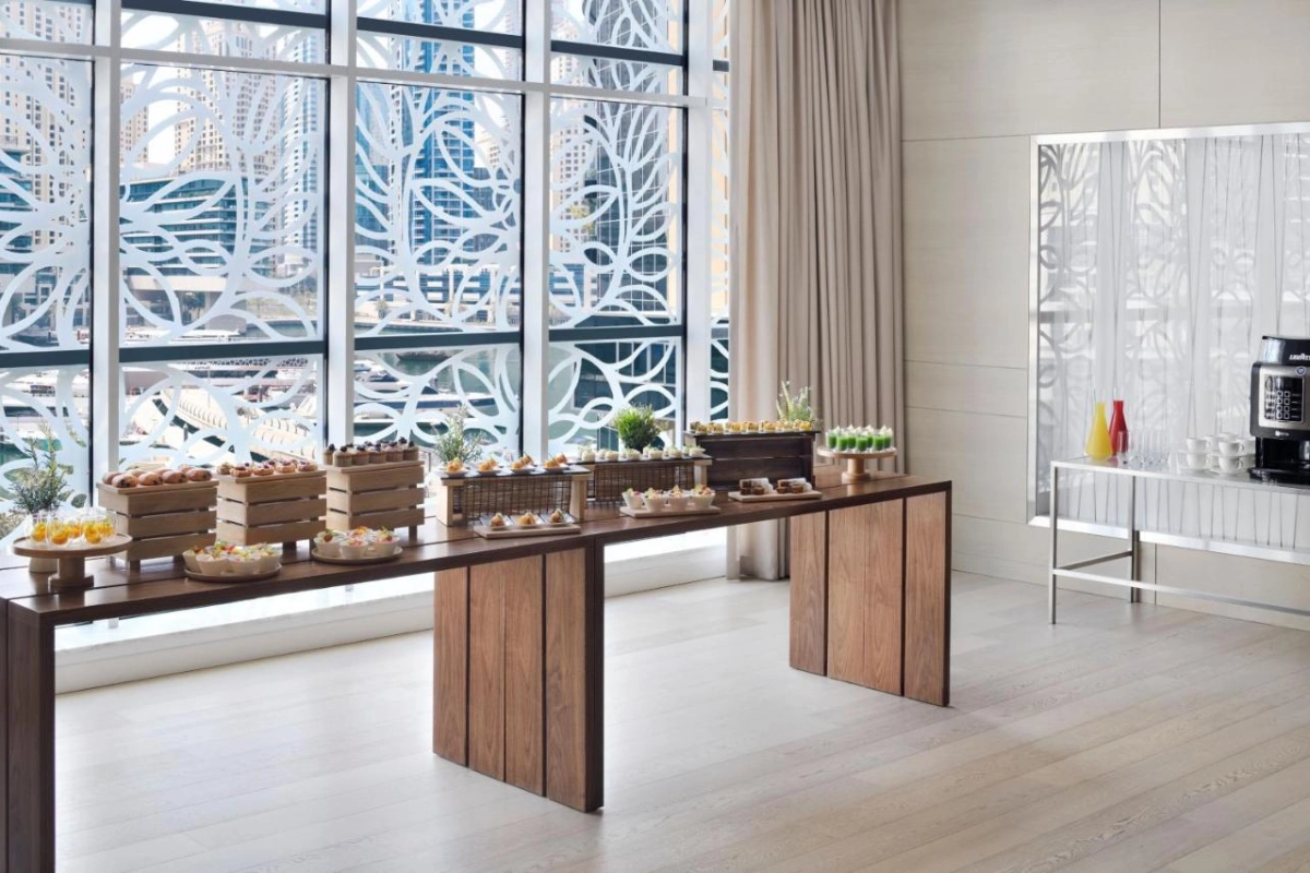 Accents restaurant enchants with international cuisine, from vibrant Middle Eastern dishes to delicate desserts, savoured in a polished setting with marina vistas. The Charm Thai restaurant elevates dining with bold Southeast Asian flavours, while the Marina Bar crafts artisanal cocktails in a chic ambiance. A daily buffet breakfast ignites mornings with fresh American or continental offerings. An outdoor pool beckons for refreshing dips, and a modern fitness centre invigorates. A sun-drenched terrace offers tranquil leisure, while the concierge arranges explorations of Dubai Marina Mall or nearby cultural sites, weaving adventure with opulent leisure.