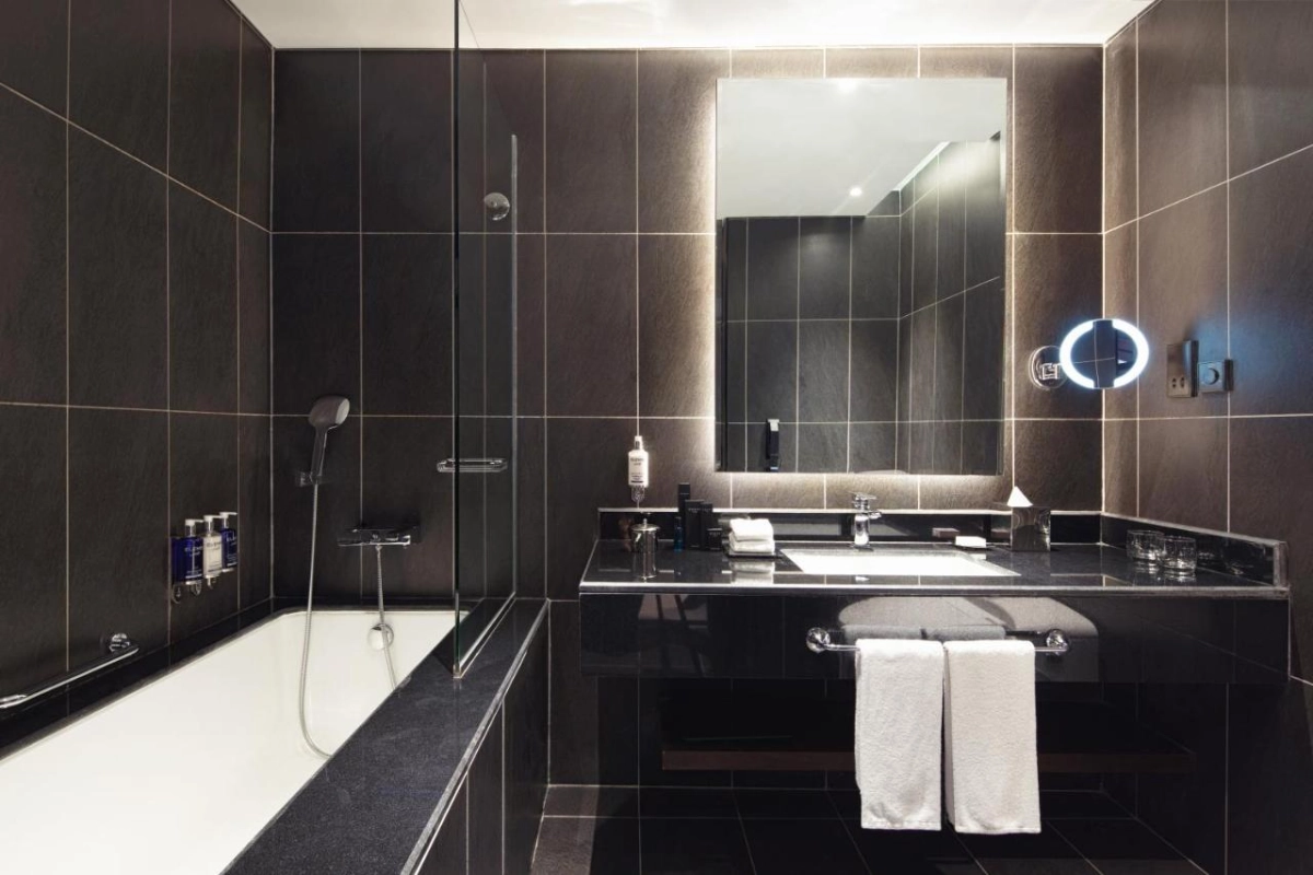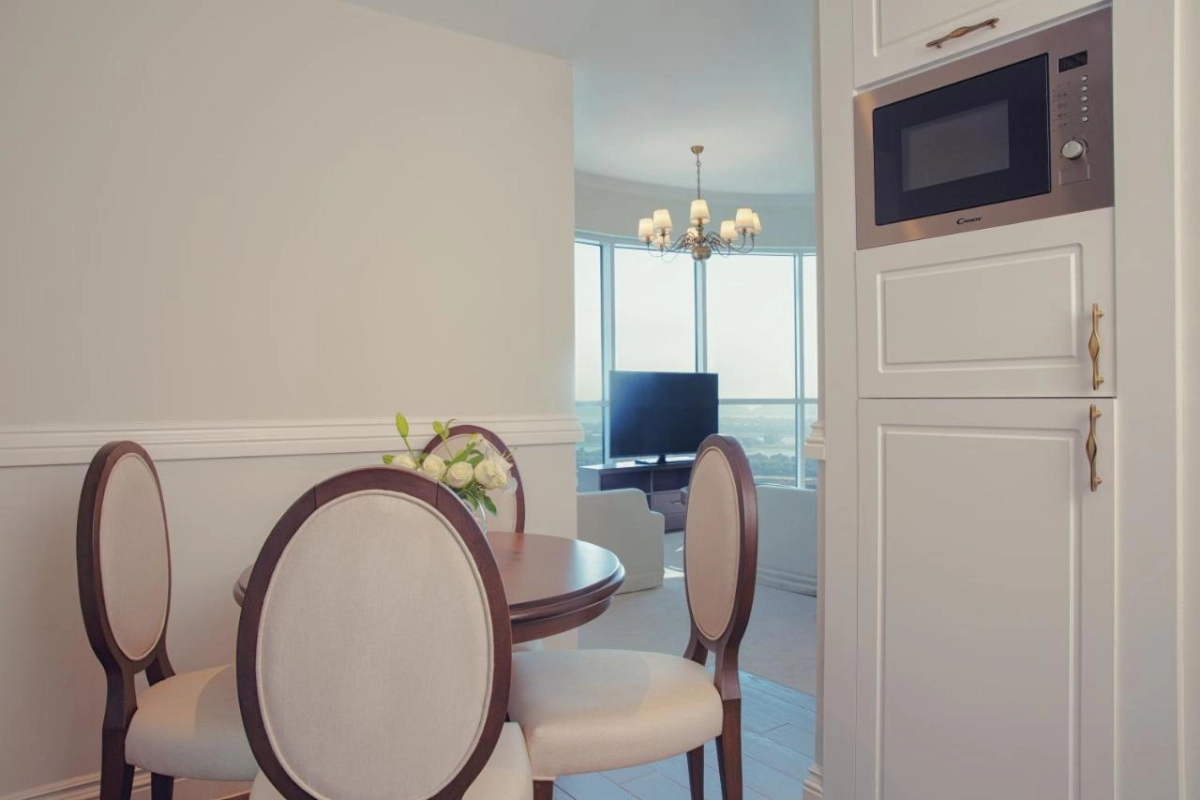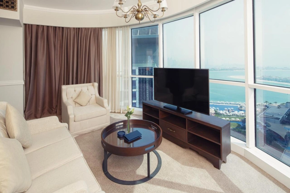 The 279 rooms and 285 serviced apartments radiate refined splendor, featuring plush bedding, air-conditioned calm, and flat-screen satellite televisions. Each includes coffee and tea facilities, minibars, spacious wardrobes, and private bathrooms with premium Floris toiletries, bathrobes, and slippers, while select suites offer balconies with Arabian Gulf or Dubai Marina skyline views, crafting an exquisite domain for discerning travellers seeking sophisticated comfort.