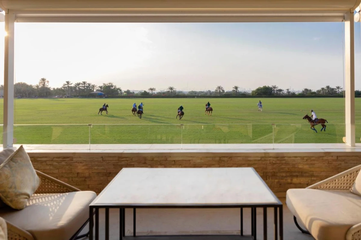 Each accommodation exudes refined luxury, featuring in-room entertainment centres with LED TVs, surround sound, Nespresso machines, and fully stocked luxury minibars. Private balconies or terraces offer sweeping views of the lush polo fields and the distant Dubai skyline, while villas elevate the experience with private pools, in-villa spa services, and bespoke BBQ experiences with a personal chef. The owner's private art collection, displayed throughout, adds a cultured touch to the sophisticated interiors.