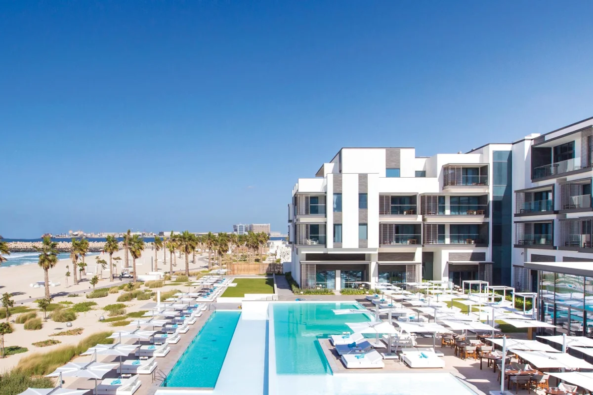 Nikki Beach Resort & Spa Dubai, a five-star resort in Jumeirah near the Dubai Canal, exudes vibrant beachfront elegance, blending luxurious comfort with captivating Arabian Gulf views since its 2017 opening.