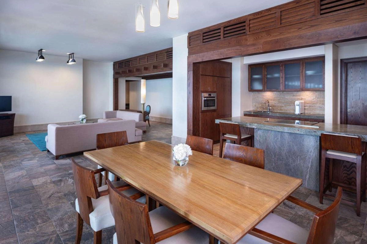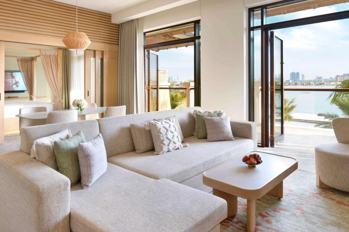 Each accommodation blends French elegance with tropical sophistication, equipped with high-definition flat-screen TVs, well-stocked minibars, premium coffee and tea facilities, spacious wardrobes, and Bose sound stations for immersive audio. Suites and villas elevate the experience with expansive living areas, dedicated dining spaces, and opulent en-suite bathrooms, ensuring a refined and restful stay with private balconies showcasing Arabian Gulf views.