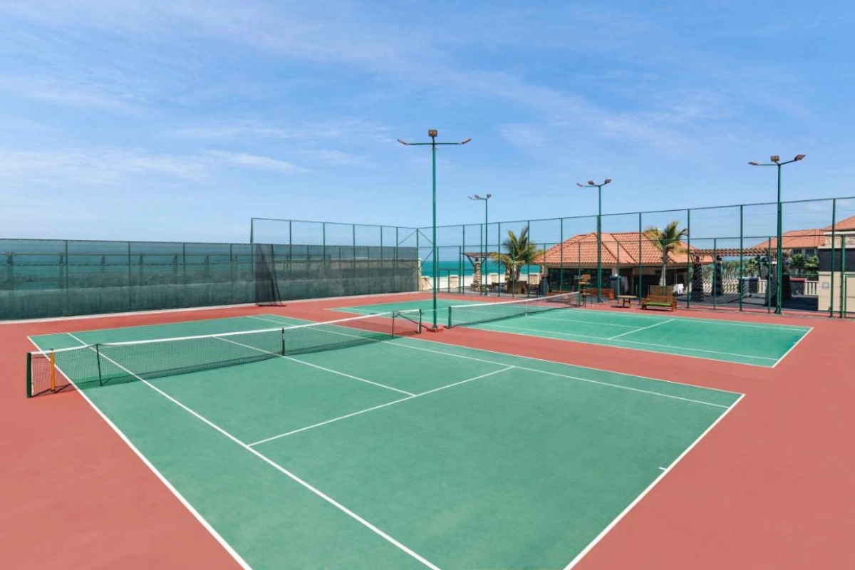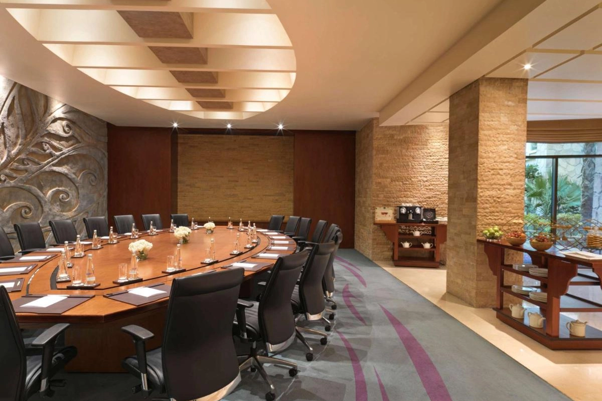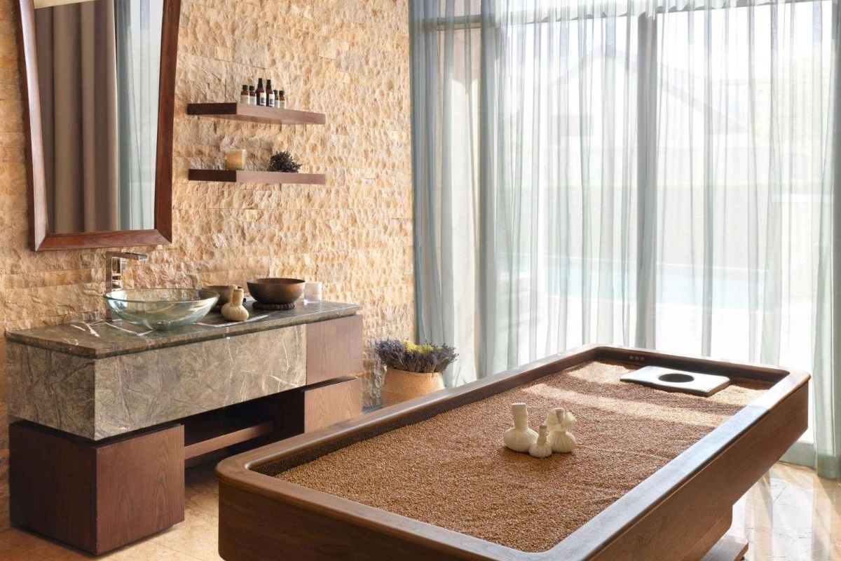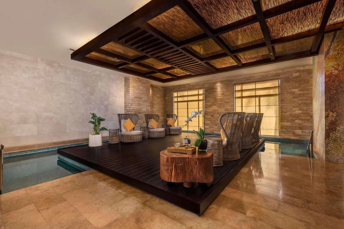 Dining is a global celebration across 12 distinct venues. Porterhouse Steaks & Grill delights with perfectly seared cuts and masterful grills, while Moana Seafood presents the freshest Arabian Sea catches in a refined setting. Maui Beach crafts refreshing cocktails by the shore, and Laguna Beach Taverna & Lounge blends boho-chic charm with Mediterranean-inspired dishes, from herb-infused mezzes to delicate desserts. The Sofitel SPA with L'Occitane offers 28 treatment rooms, a rejuvenating seawater pool, a soothing sauna, and indulgent therapies, including massages and serene relaxation spaces. Sofitel FITNESS features cutting-edge cardio and weight equipment, while a boat jetty and tennis court cater to adventurous spirits. Curated experiences, like private dhow cruises, immerse guests in Dubai's coastal allure.