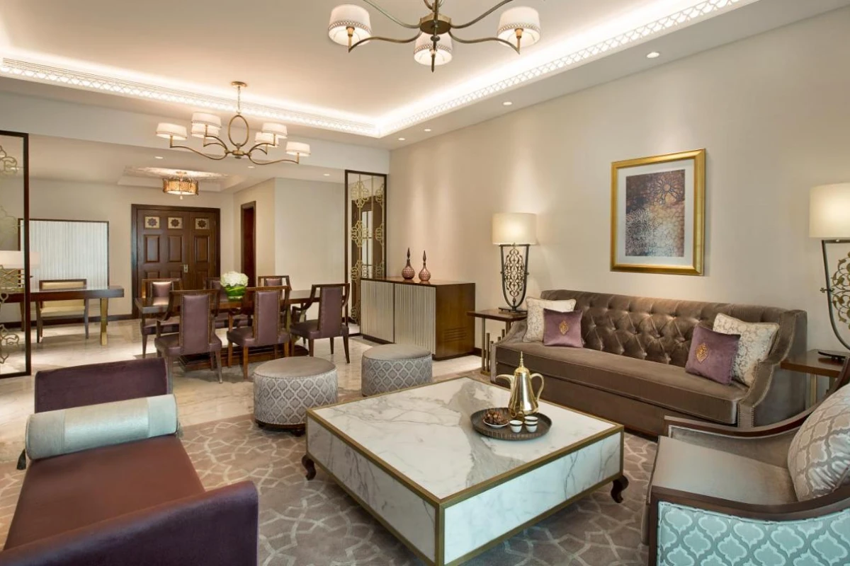 Dining at The Ritz-Carlton is a global celebration, with restaurants showcasing vibrant Asian, Arabian, and Mediterranean flavours. Amaseena offers authentic Middle Eastern cuisine under starlit Bedouin-style tents, while Blue Jade crafts exquisite Asian dishes with a modern twist. Splendido serves refined Italian fare with gulf views, and the Lobby Lounge invites relaxed moments with artisanal teas and cocktails. The Ritz-Carlton Spa, inspired by Arabian Hammam traditions with an urban edge, offers signature treatments, soothing steam rooms, and hot and cold plunge pools. Six outdoor swimming pools provide refreshing leisure, complemented by a state-of-the-art gym. Curated experiences, like private yacht charters or golf at the nearby Emirates Golf Club, immerse guests in Dubai's dynamic allure.
