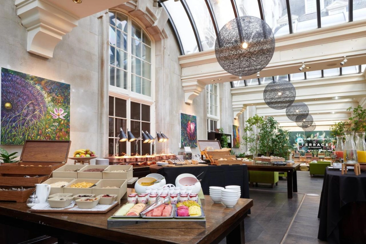 Dining at Terrace at The Dilly is a delight, with an outdoor terrace overlooking Piccadilly, serving seasonal British dishes and a family-friendly afternoon tea featuring delicate pastries and curated teas. Madhu's, located in the elegant Oak Room, offers vibrant Indian cuisine crafted with authentic flavours, perfect for intimate dinners or lively gatherings. A lavish breakfast buffet, featuring fresh pastries and British specialties, energizes guests each morning in a refined setting.