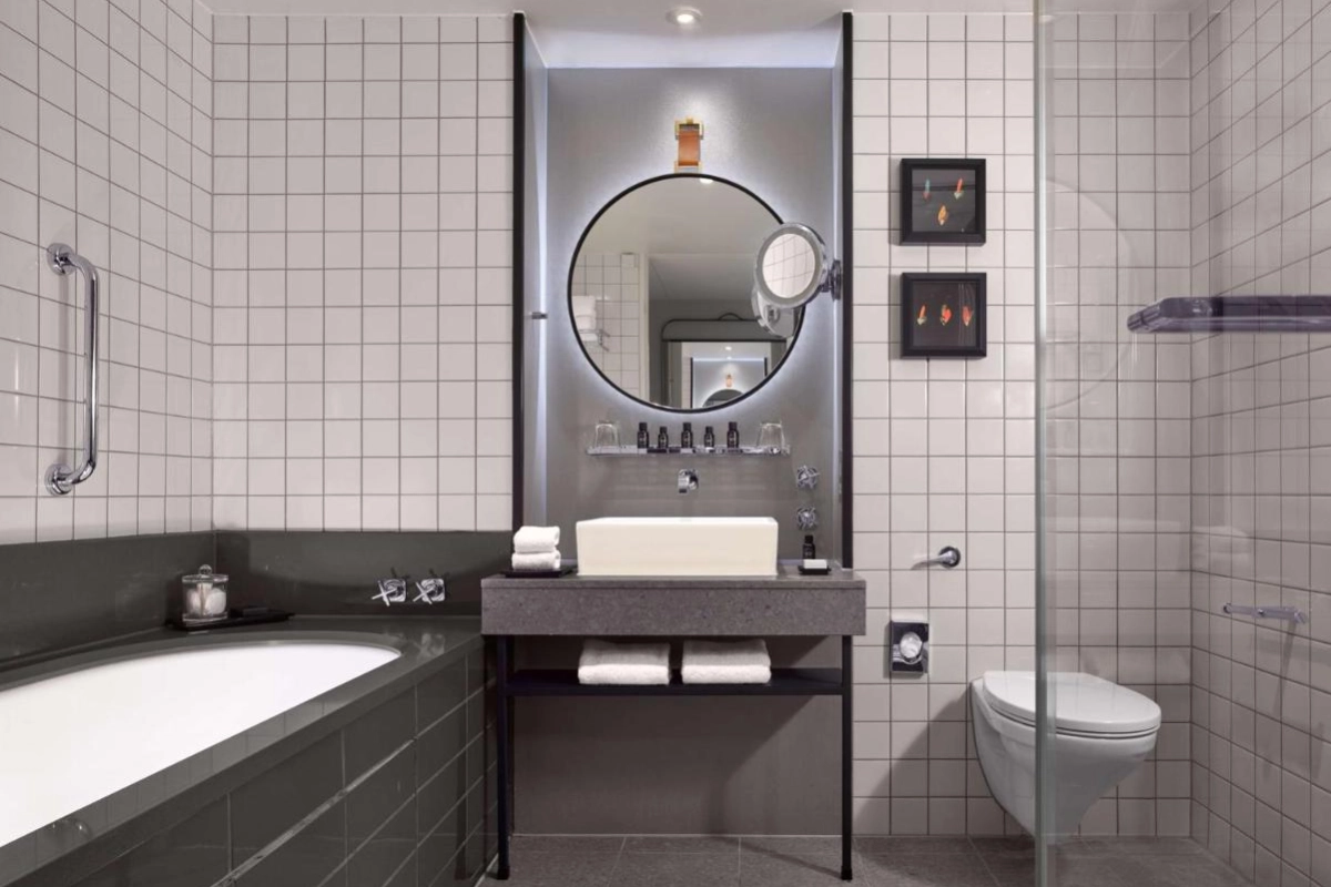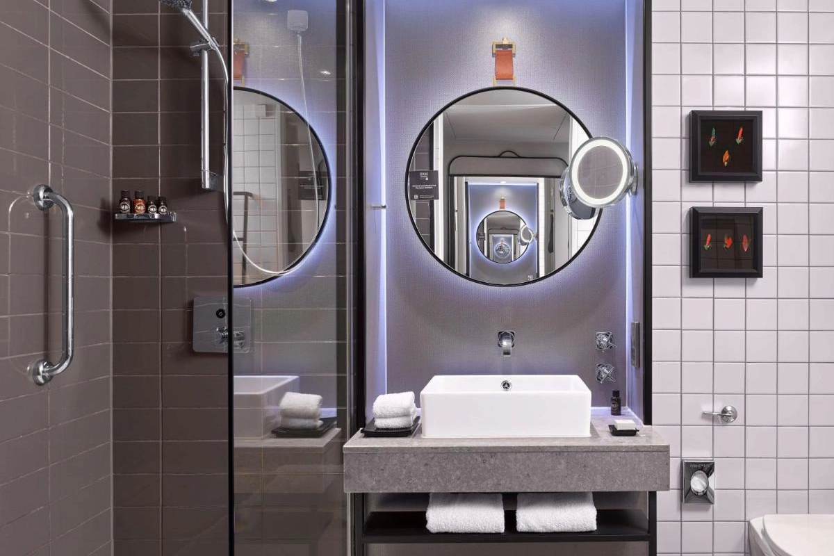Housed in a historic building, this stylish property features 137 rooms, including 15 exquisite suites, each artfully designed to evoke the glamour of travel's golden age. Air-conditioned spaces showcase bold Art Deco décor, plush bedding, flat-screen TVs, Nespresso machines, and sleek bathrooms with premium toiletries, creating an ambiance of relaxed sophistication. Playful ornamentation and vibrant color choices enhance the inviting atmosphere, perfect for a memorable urban escape.