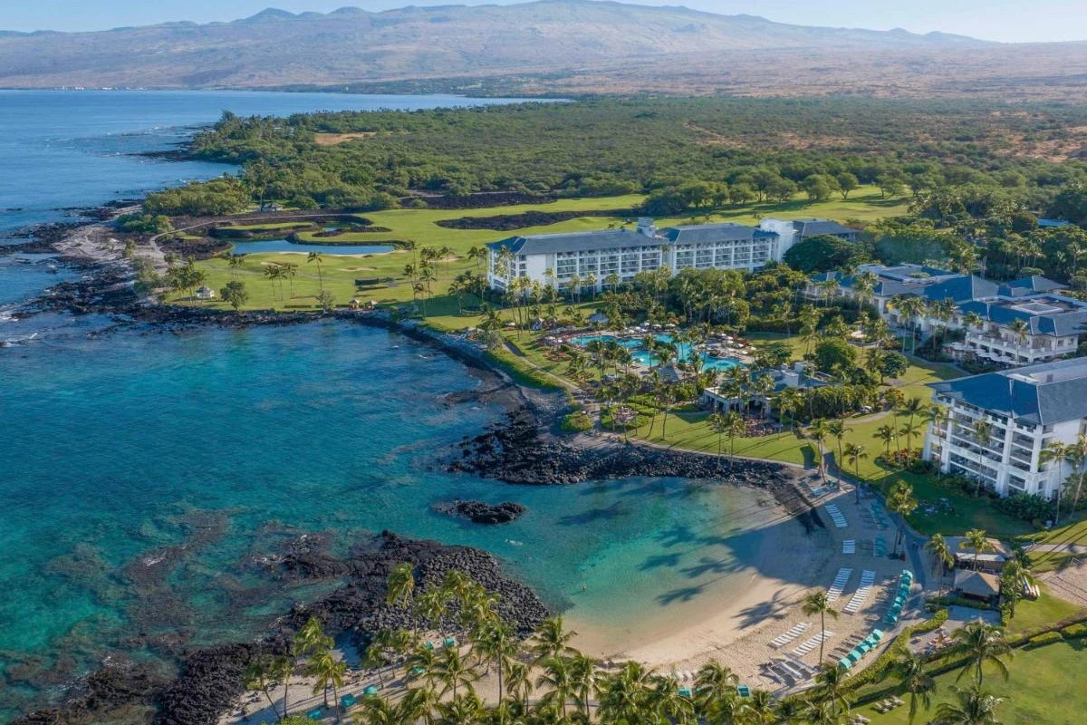 The resort hotel is located about an half hour north of the airport in Kona. The outdoor landscaping is awesome. The grounds look like you’re in paradise. There’s a beach that’s part of the...