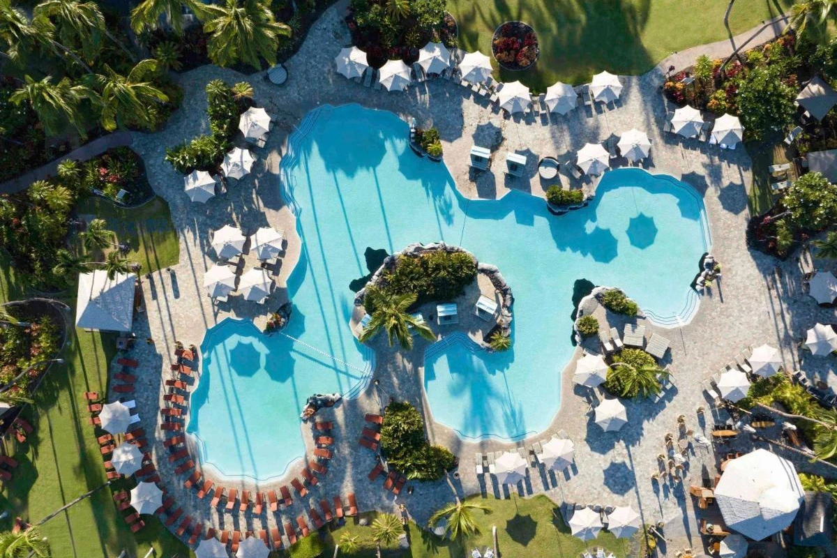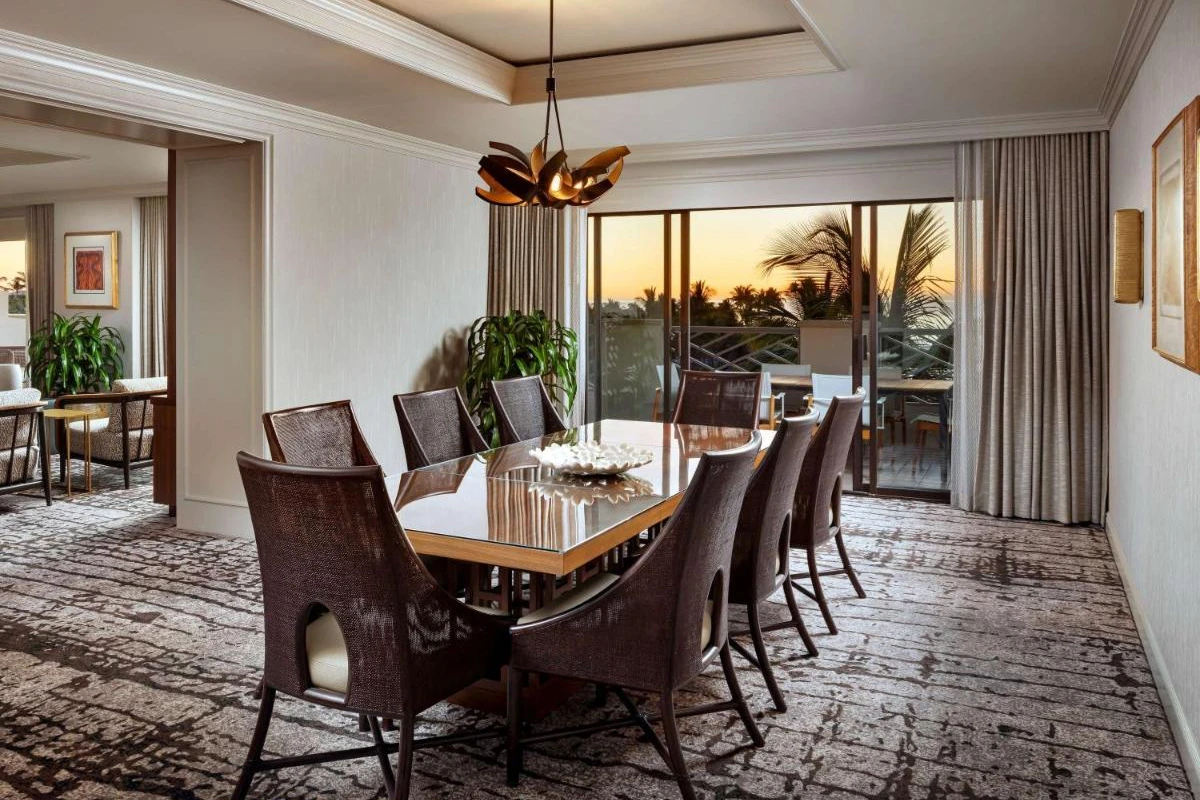 Dining is a celebration of island-inspired cuisine across six restaurants, including Hale Kai's casual fare, Binchotan's sushi and Japanese steakhouse offerings, and Orchid Court's three-day rotating breakfast buffet. Four bars serve expertly crafted cocktails, complementing the vibrant aloha spirit. Guests can unwind at the award-winning Spa Without Walls with waterfall massage huts and cabanas, relax in the 10,000-square-foot oceanfront pool, or enjoy 10 tennis courts, 36 holes of golf, and a fitness centre. Cultural activities, ocean adventures, and sea turtle sightings enhance the experience, supported by attentive concierge services.