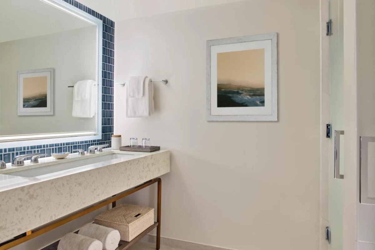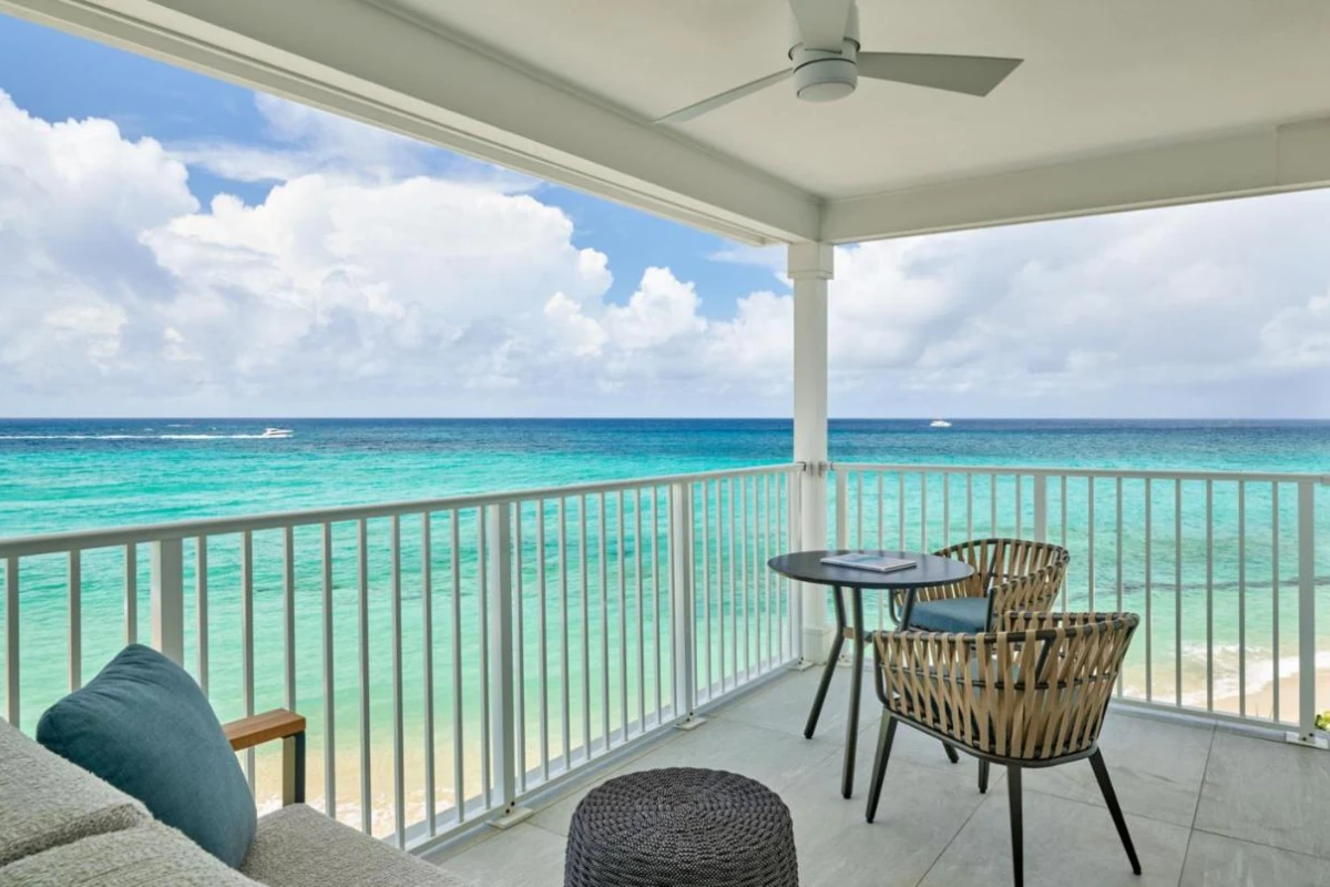 The 94 rooms and suites feature air-conditioned comfort, flat-screen TVs, minibars, and private bathrooms with premium toiletries. Private balconies or patios open to ocean or garden views, crafting a cozy haven for couples or travellers. An outdoor pool, hot tub, and access to Frenchman's Reef amenities—including five additional bars and restaurants, an infinity-edge cliffside pool, and the Flying Frenchman luxury catamaran—create a restful setting, with complimentary Wi-Fi ensuring connectivity.