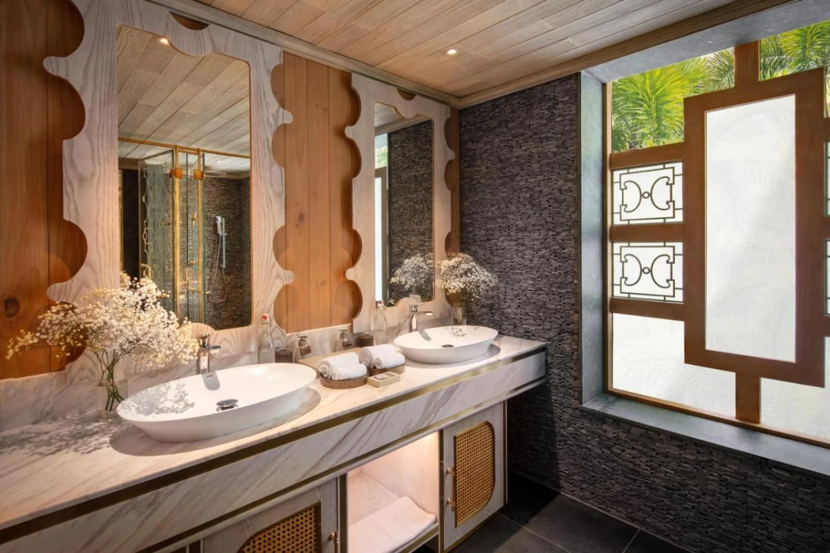 The 35 spacious suites and villas, available in one or two-bedroom configurations, exude contemporary comfort with handcrafted wooden furniture and natural wood floors. Each features large terraces with sweeping river views, private plunge pools, and plush bathrooms equipped with wooden bathtubs and premium toiletries. The minimalist yet refined interiors, accented with local craftsmanship, create a soothing ambiance, inviting guests to unwind in harmony with the surrounding nature.