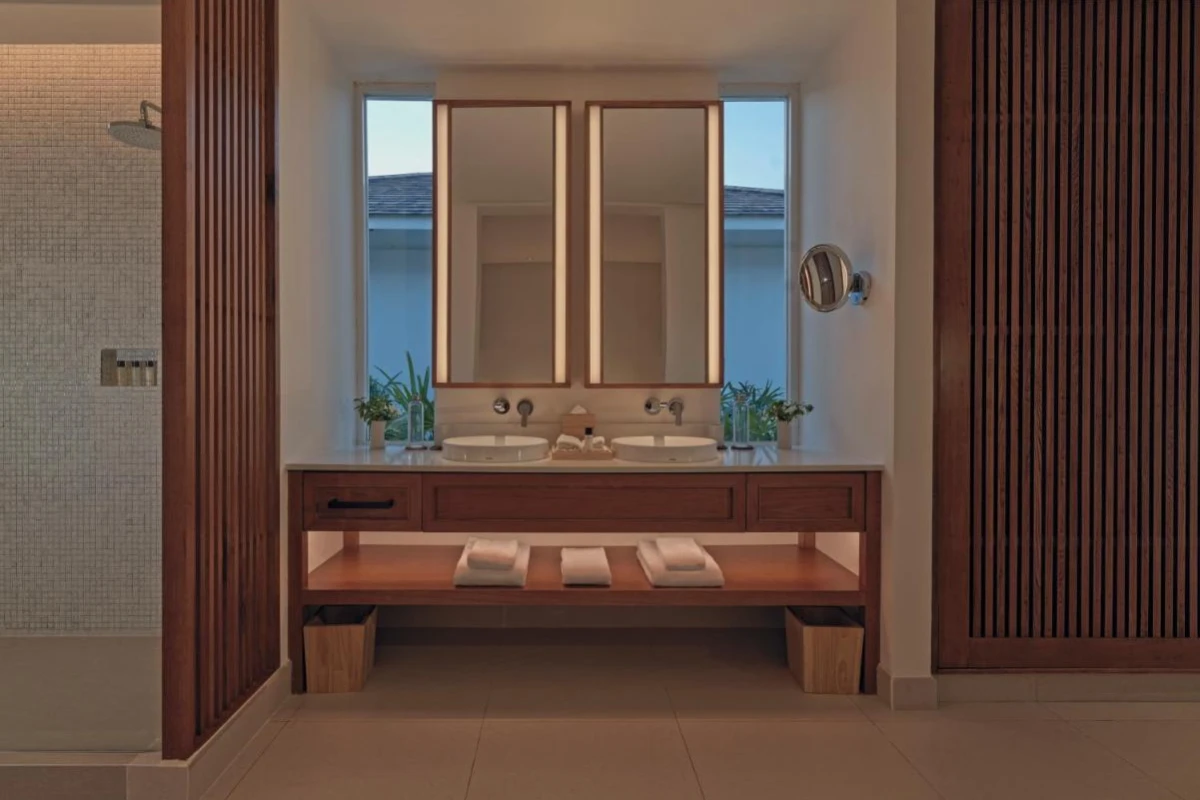 The 46 spacious pavilions and villas blend modern and post-colonial design, featuring muted tones inspired by local sand and granite. Each offers flat-screen TVs, private balconies, and expansive seating areas, with some boasting private courtyards, plunge pools, or outdoor bathtubs. Large terraces open to verdant gardens or sea views, creating an elegant yet relaxed retreat infused with coastal charm.