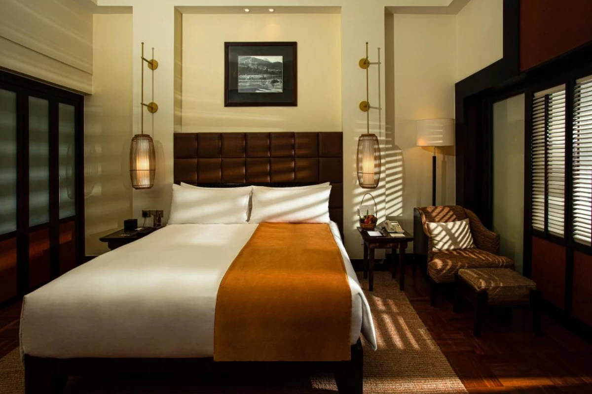 The 293 spacious rooms and suites blend contemporary Vietnamese decor with modern comforts, featuring wooden floors, flat-screen TVs, minibars, and private balconies with tranquil views of the lake, pool, or Hanoi's skyline. Large en-suite bathrooms with walk-in rainshowers and deep bathtubs provide a refined retreat, enhanced by premium toiletries, ensuring an elegant and restful stay.
