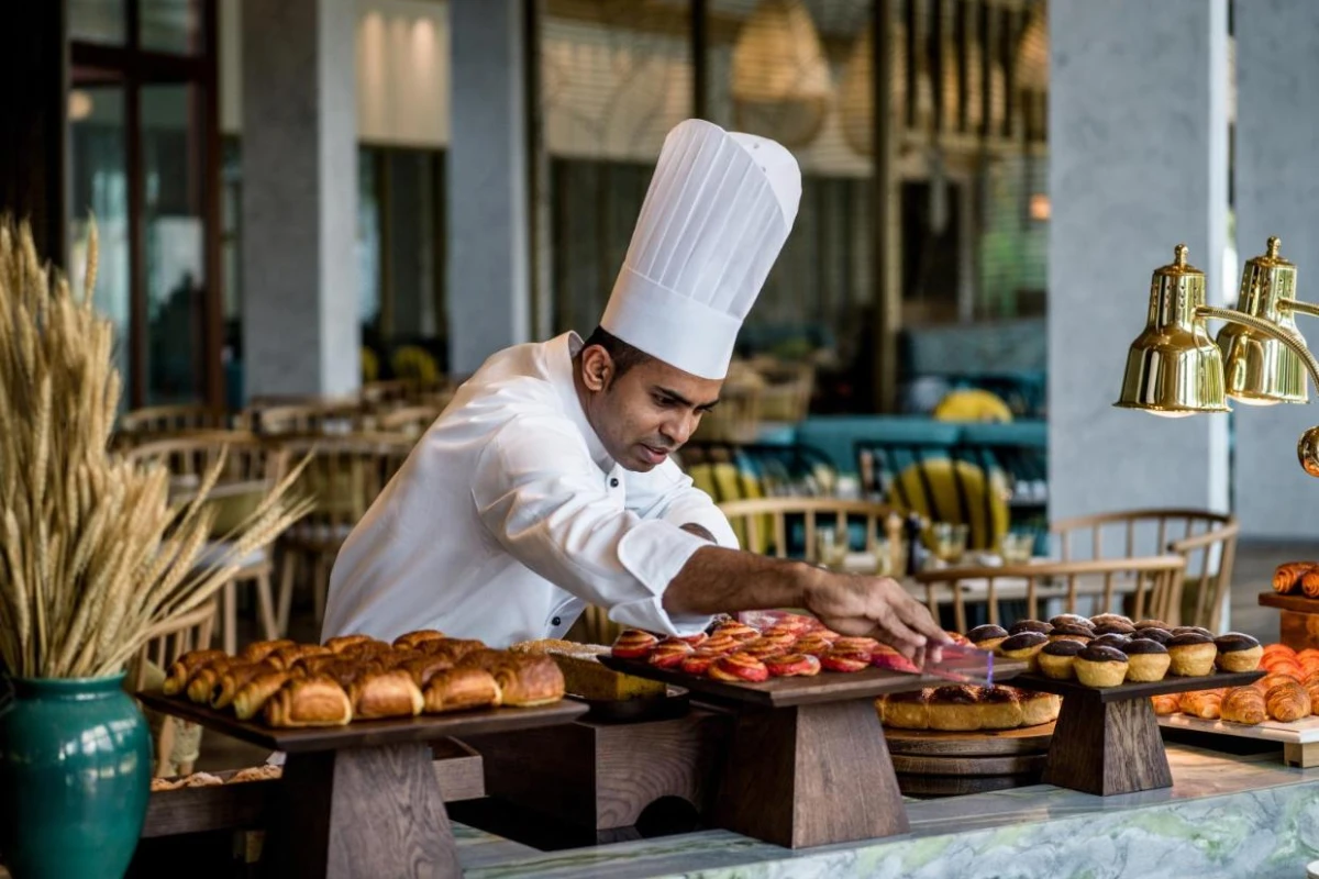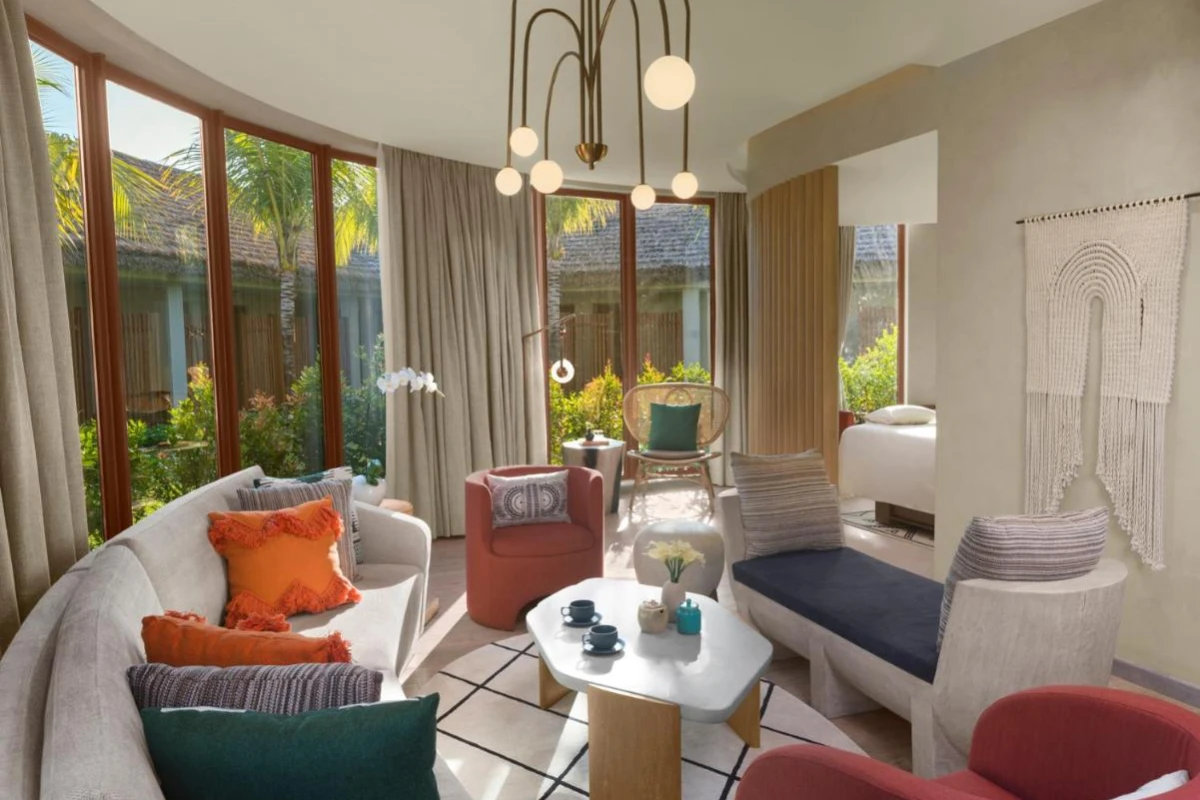 Each of the 375 villas, ranging from 124-square-meter sanctuaries to the expansive 414-square-meter Presidential Villa, boasts a private swimming pool and artfully designed interiors. Guests are enveloped in comfort with air-conditioned spaces, featuring living rooms, fully equipped kitchens, flat-screen TVs with cable channels, coffee machines, and spacious bathrooms with deep soaking tubs, rainfall showers, plush robes, and premium toiletries. Private terraces or gardens invite moments of reflection, with select villas offering direct beachfront access for seamless seaside indulgence.