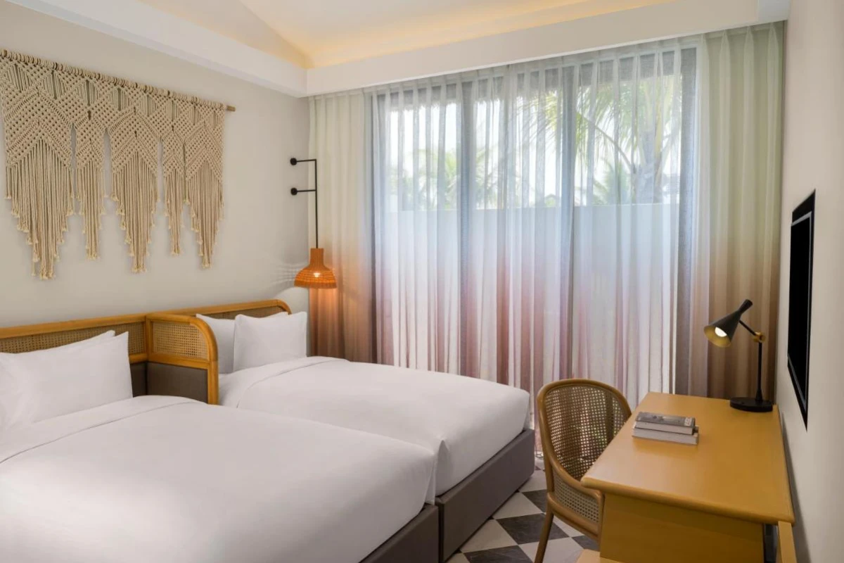 Dining at New World Phu Quoc Resort is a celebration of coastal flavours and global influences. The main restaurant, Bay Kitchen, presents a vibrant array of Vietnamese seafood dishes and international favorites, savoured in an open-air setting with ocean breezes. For casual bites, the beachside Driftwood Lounge serves tropical cocktails and light fare, from fresh spring rolls to grilled prawns, perfect for sunset gatherings. The resort's private beach beckons with complimentary kayaking and paddleboarding, while the sparkling outdoor pool and lush gardens with shaded seating offer serene escapes. The spa centre pampers with Vietnamese-inspired treatments, complemented by a hot tub and sauna, while the modern fitness centre caters to those seeking an active retreat. Guided excursions, from snorkeling adventures to local fishing village tours, immerse guests in Phu Quoc's vibrant culture.