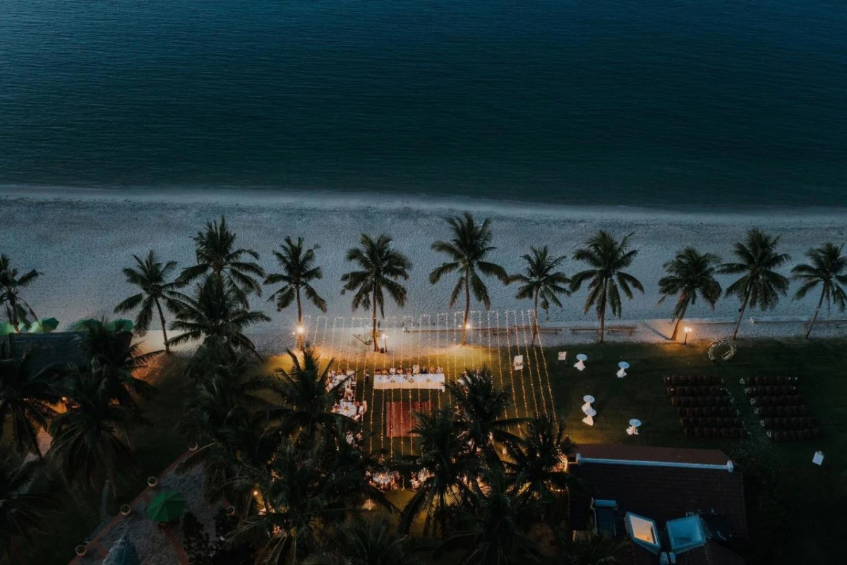 Palm Garden Beach Resort and Spa, a distinguished five-star retreat along the sun-kissed shores of Cua Dai Beach in Hoi An, Vietnam, blends traditional Vietnamese architecture with modern elegance. Set across five hectares of lush gardens boasting over 400 species of palm trees and tropical plants, this enchanting property captures the cultural essence of Hoi An, offering a serene escape just minutes from the UNESCO-recognized Hoi An Ancient Town.