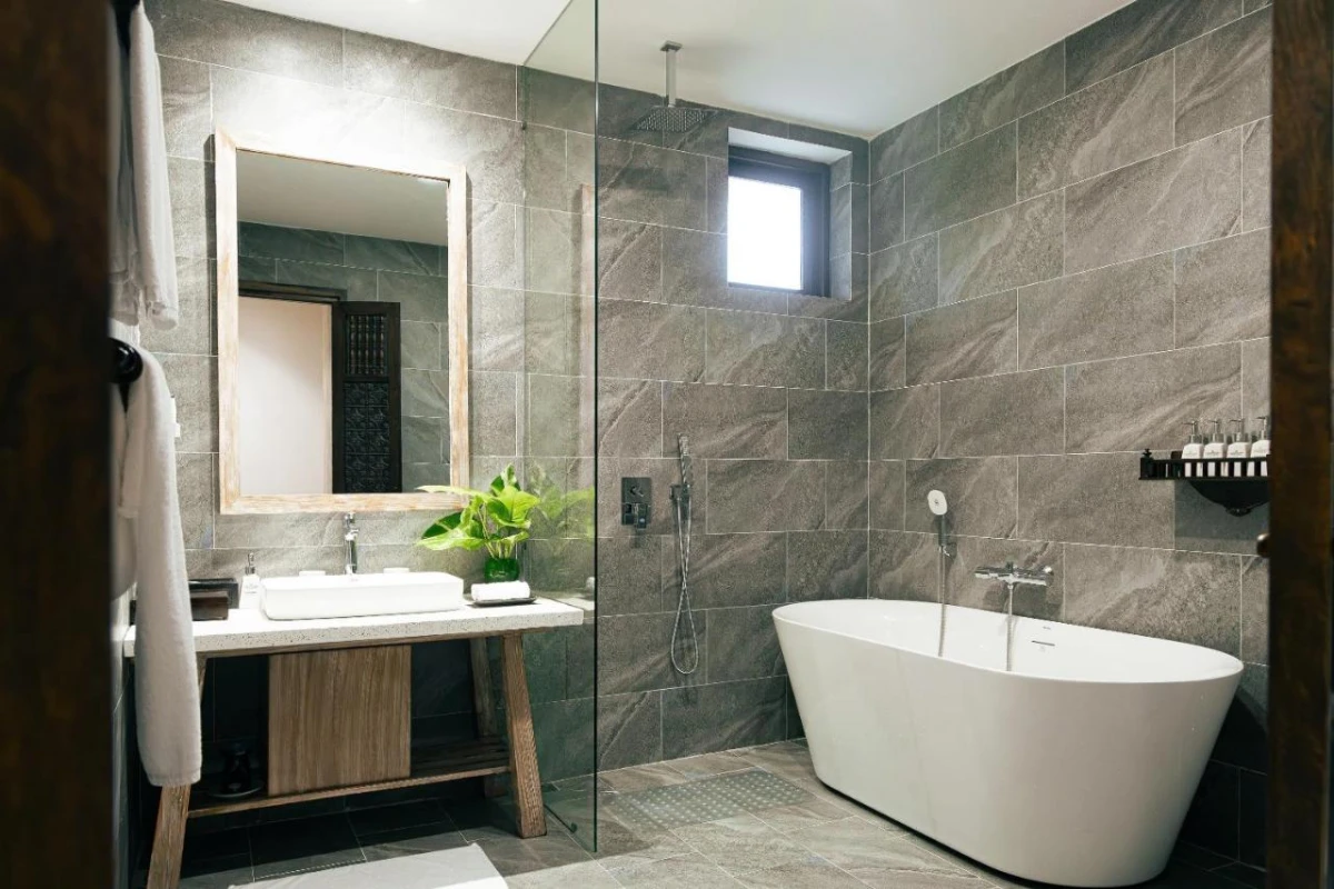 The resort's 216 accommodations, including wooden-designed rooms and beachfront bungalows, exude timeless charm with natural materials and classic furnishings. Each air-conditioned space features private balconies with sweeping views of the sea or vibrant gardens, complemented by flat-screen TVs with cable channels, safes, minibars, and tea and coffee-making facilities. Spacious bathrooms, adorned with premium toiletries and rainfall showers, create a soothing retreat for couples or solo travellers seeking refined comfort.